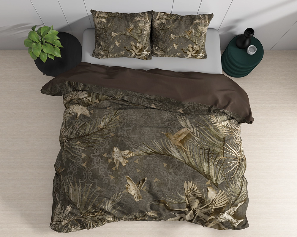 De WILD collectie van Dreamhouse bevat trendy prints waaronder dit Aurelien dekbedovertrek. De aarde kleuren stralen een rust in je slaapkamer uit en zorgen voor een prachtige basis. Met gedetailleerde vogels en waaiende bladeren trekt dit dekbedovertrek je aandacht in de kamer. Op de bruine achtergrond zijn ook nog mooie patronen vol krullen te zien. De onderkant heeft een effen kleur en is niet bedrukt.
