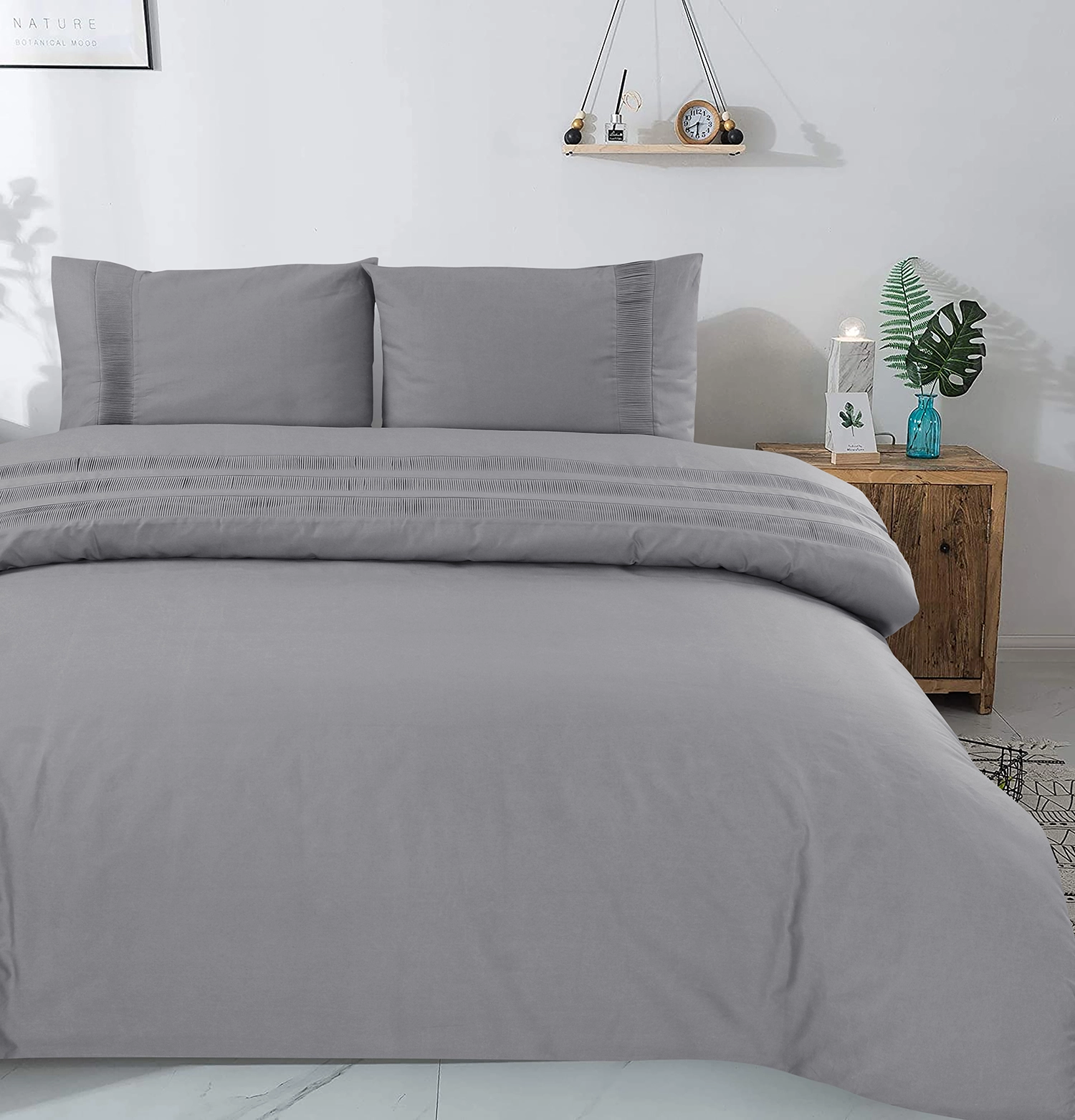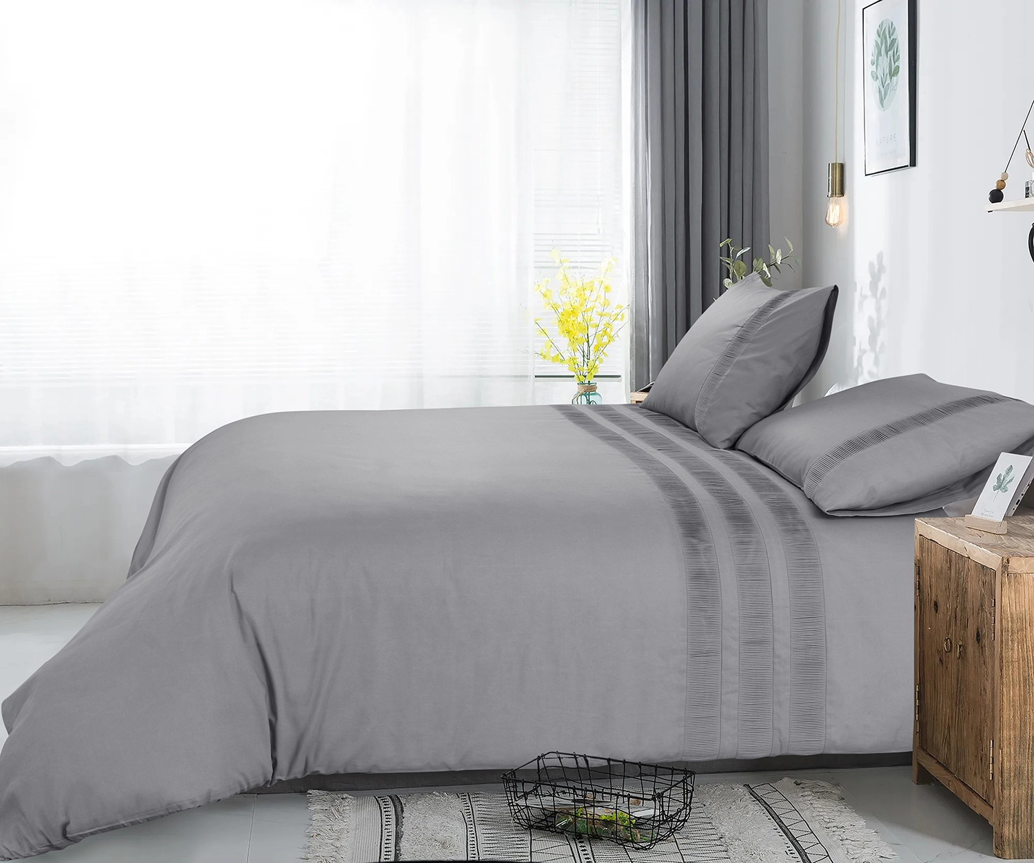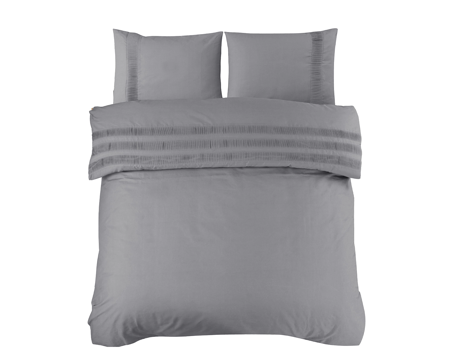 Geniet van een luxe slaapkamer met het dekbedovertrek Bali Grijs van Dreamhouse. Een mooie effen kleur zorgt ervoor dat het dekbedovertrek rust en klasse uitstraalt. Het design is subtiel en zal moeiteloos bij je interieur en decor passen. De drie geribbelde randen zorgen voor een kleine afwisseling in de elegante look. De lijn op de kussenslopen zorgt ervoor dat het volledig bij elkaar komt en het design een mooi geheel is. Ervaar ontspanning en een goede nachtrust met het grijze Bali dekbedovertrek!