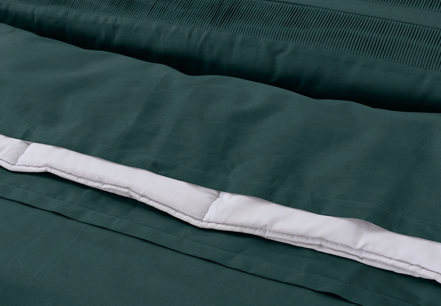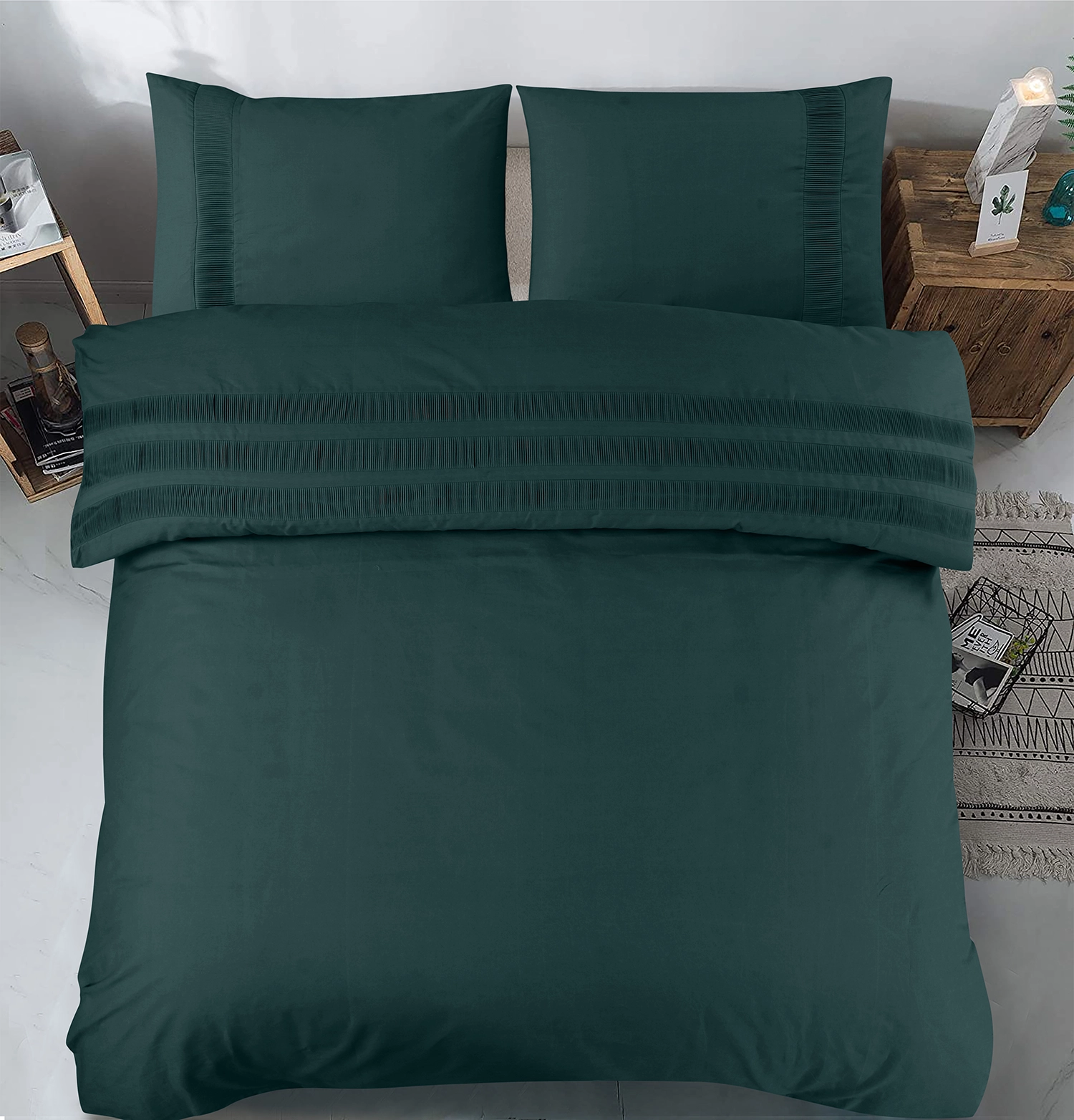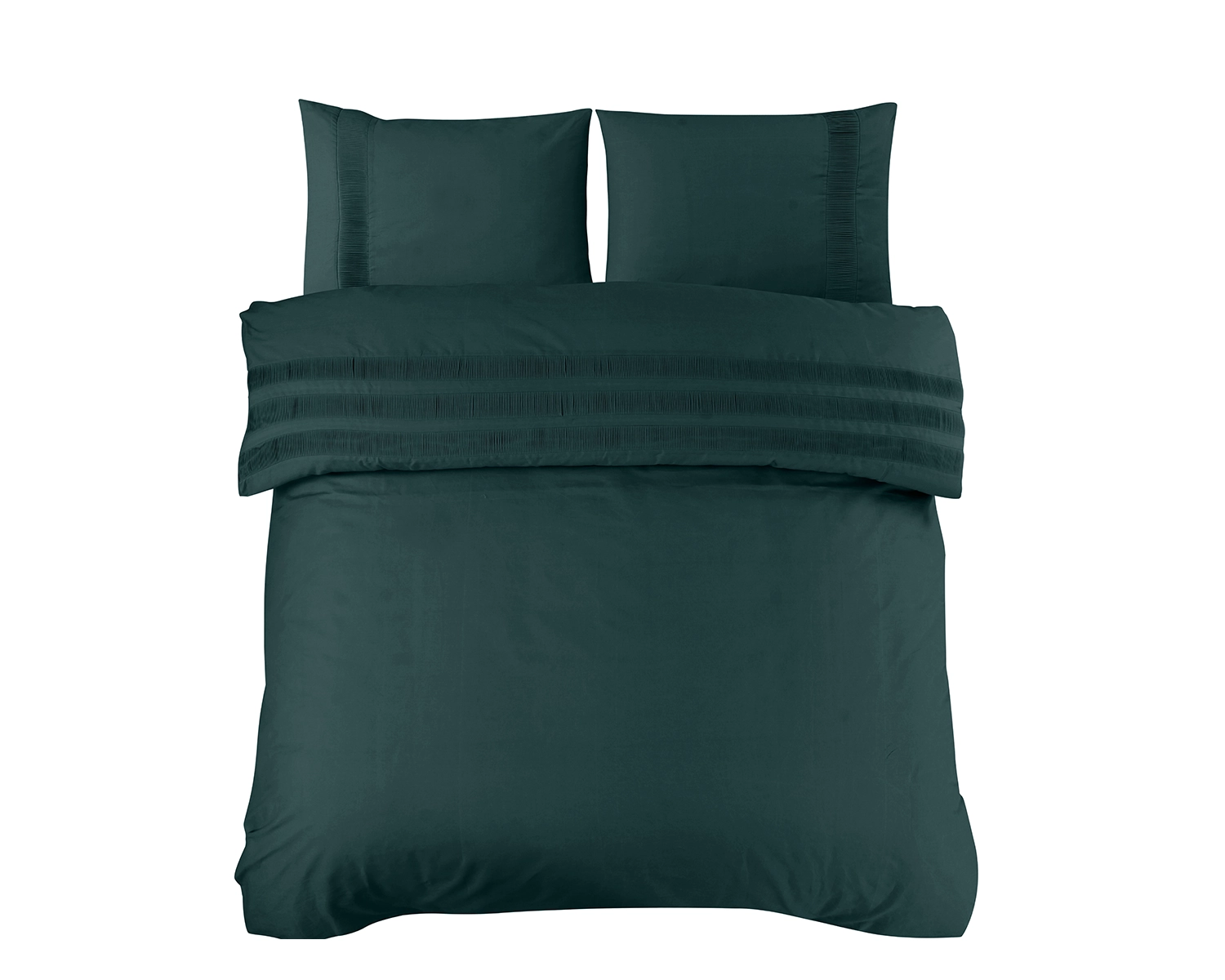 Geniet van een luxe slaapkamer met het dekbedovertrek Bali Groen van Dreamhouse. Een mooie effen kleur zorgt ervoor dat het dekbedovertrek rust en klasse uitstraalt. Het design is subtiel en zal moeiteloos bij je interieur en decor passen. De drie geribbelde randen zorgen voor een kleine afwisseling in de elegante look. De lijn op de kussenslopen zorgt ervoor dat het volledig bij elkaar komt en het design een mooi geheel is. Ervaar ontspanning en een goede nachtrust met het groene Bali dekbedovertrek!