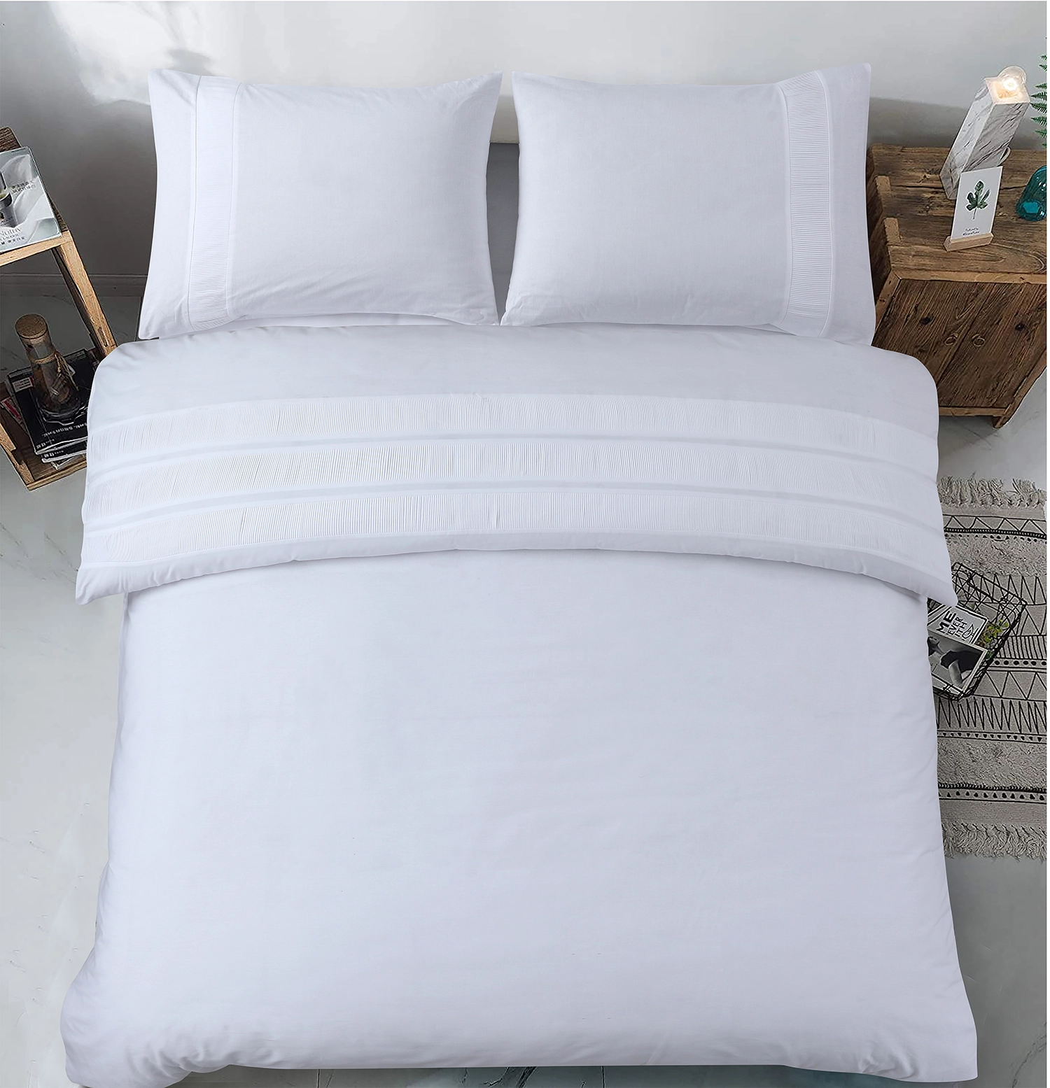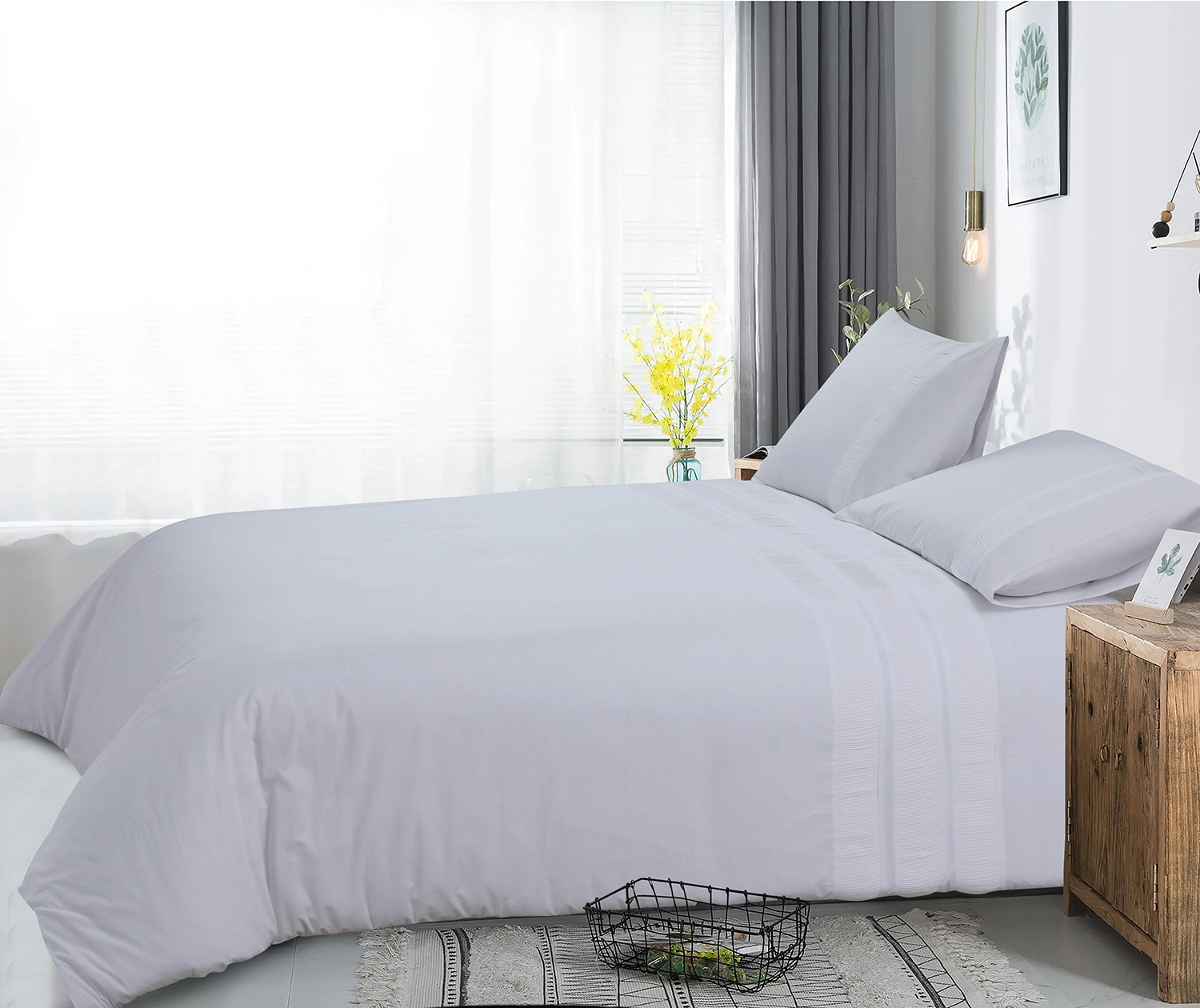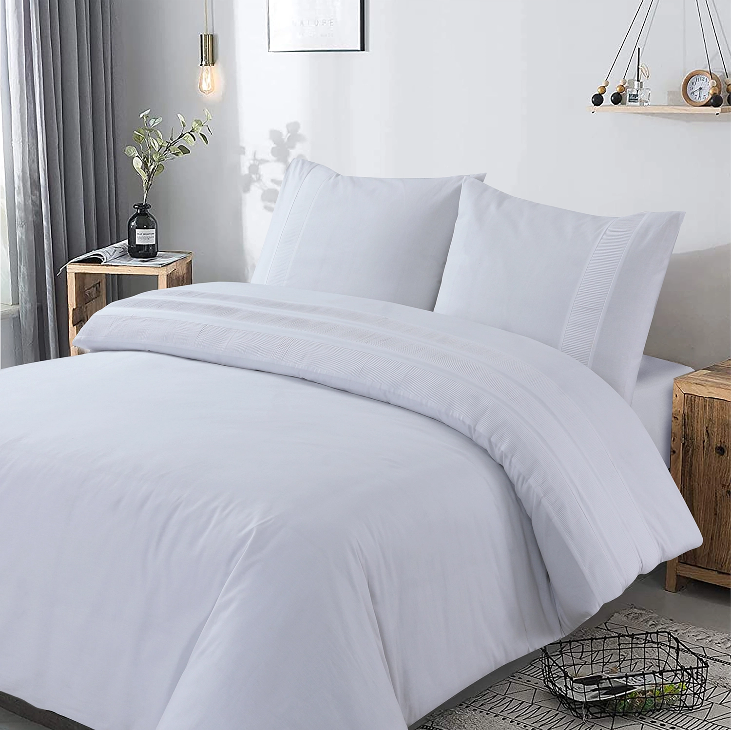 Geniet van een luxe slaapkamer met het dekbedovertrek Bali Wit van Dreamhouse. Een mooie effen kleur zorgt ervoor dat het dekbedovertrek rust en klasse uitstraalt. Het design is subtiel en zal moeiteloos bij je interieur en decor passen. De drie geribbelde randen zorgen voor een kleine afwisseling in de elegante look. De lijn op de kussenslopen zorgt ervoor dat het volledig bij elkaar komt en het design een mooi geheel is. Ervaar ontspanning en een goede nachtrust met het witte Bali dekbedovertrek!