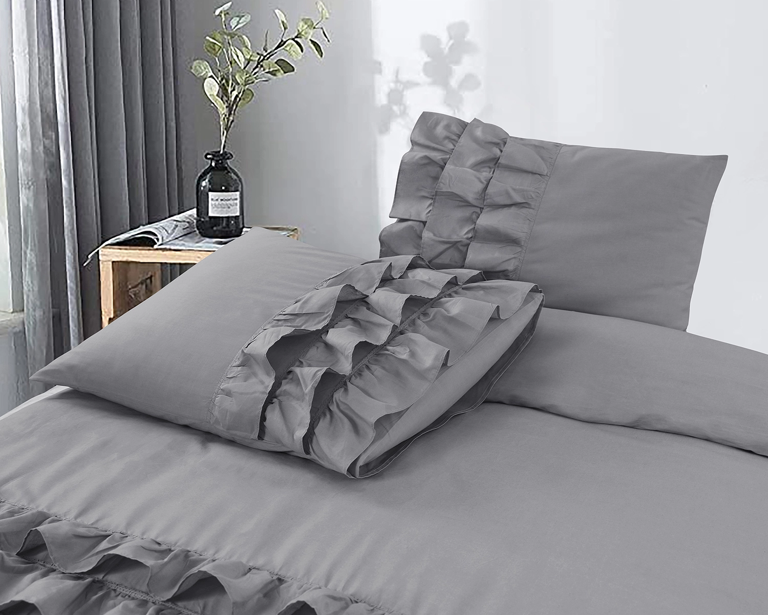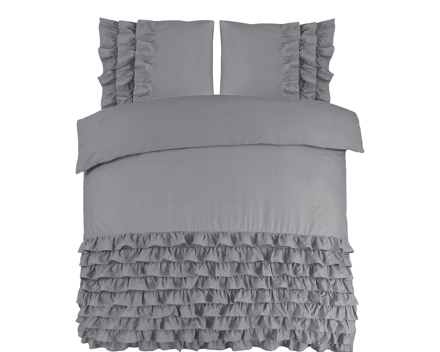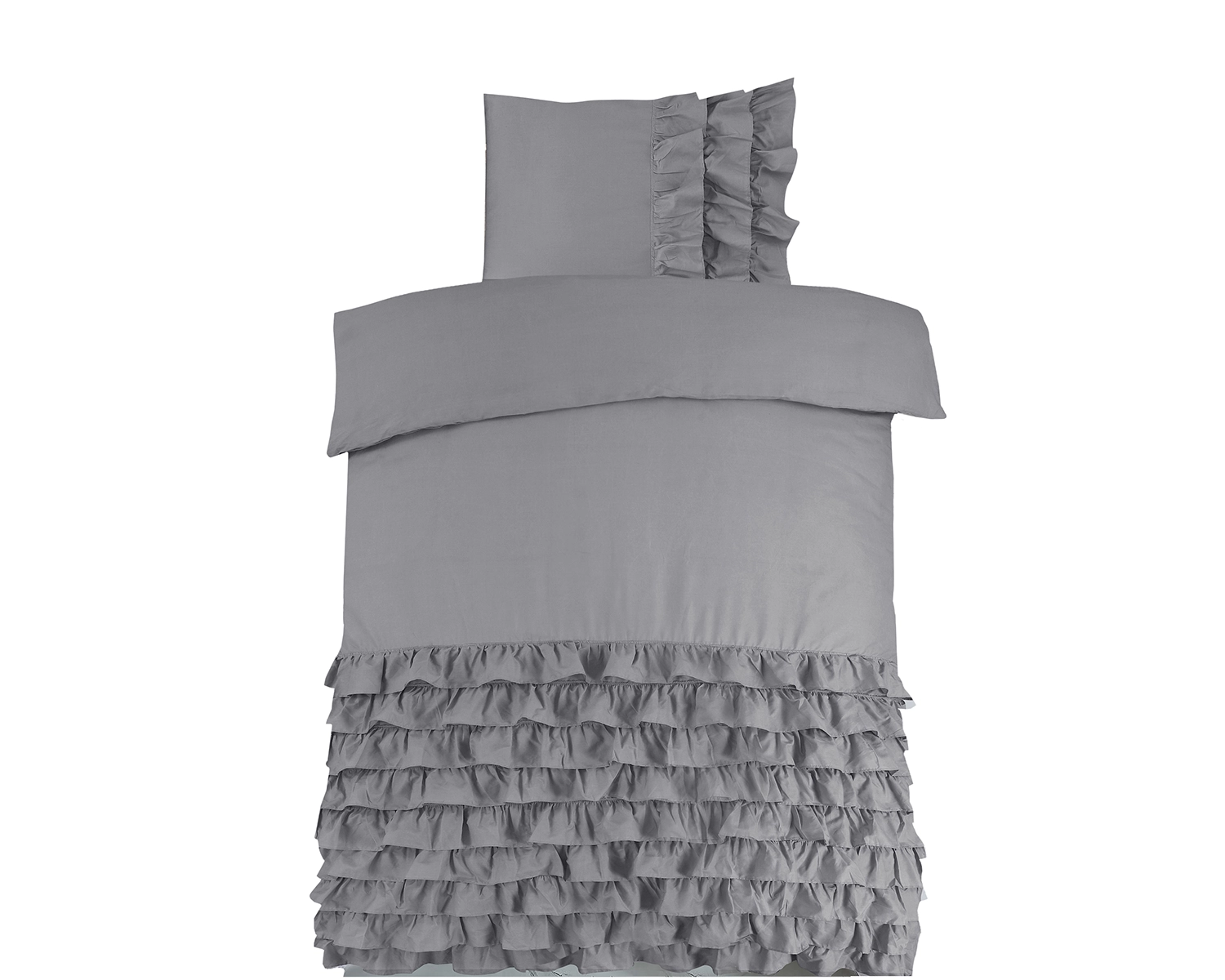 Verfraai zowel je bed als je slaapkamer met het Cyprus grijs dekbedovertrek van Dreamhouse. De effen kleur zorgt voor een rustig gevoel en laat het dekbedovertrek gemakkelijk bij je favoriete decor passen. De onderkant van het dekbedovertrek, en een deel van de kussenslopen, zitten vol ruches die een elegante en speelse sfeer toevoegen. De ruches trekken direct de aandacht en zorgen voor een stijlvol design. Met het grijze Cyprus dekbedovertrek maak je van het bed het middelpunt van je slaapkamer!