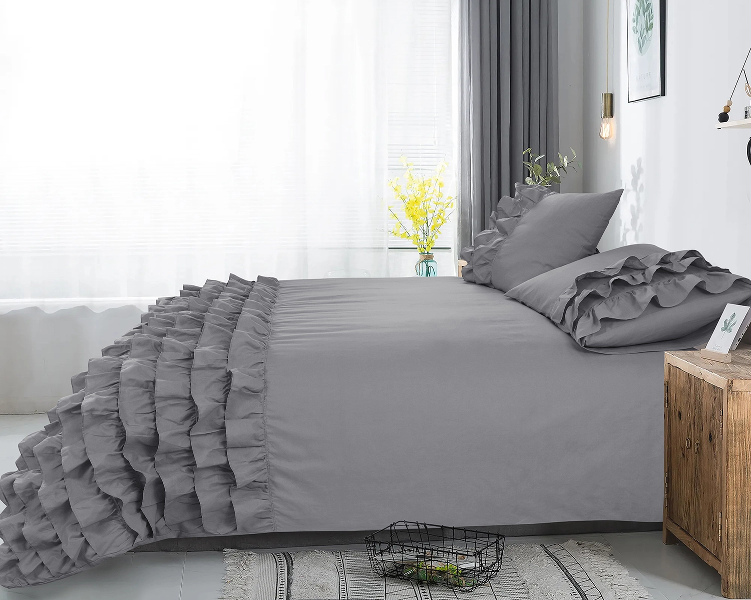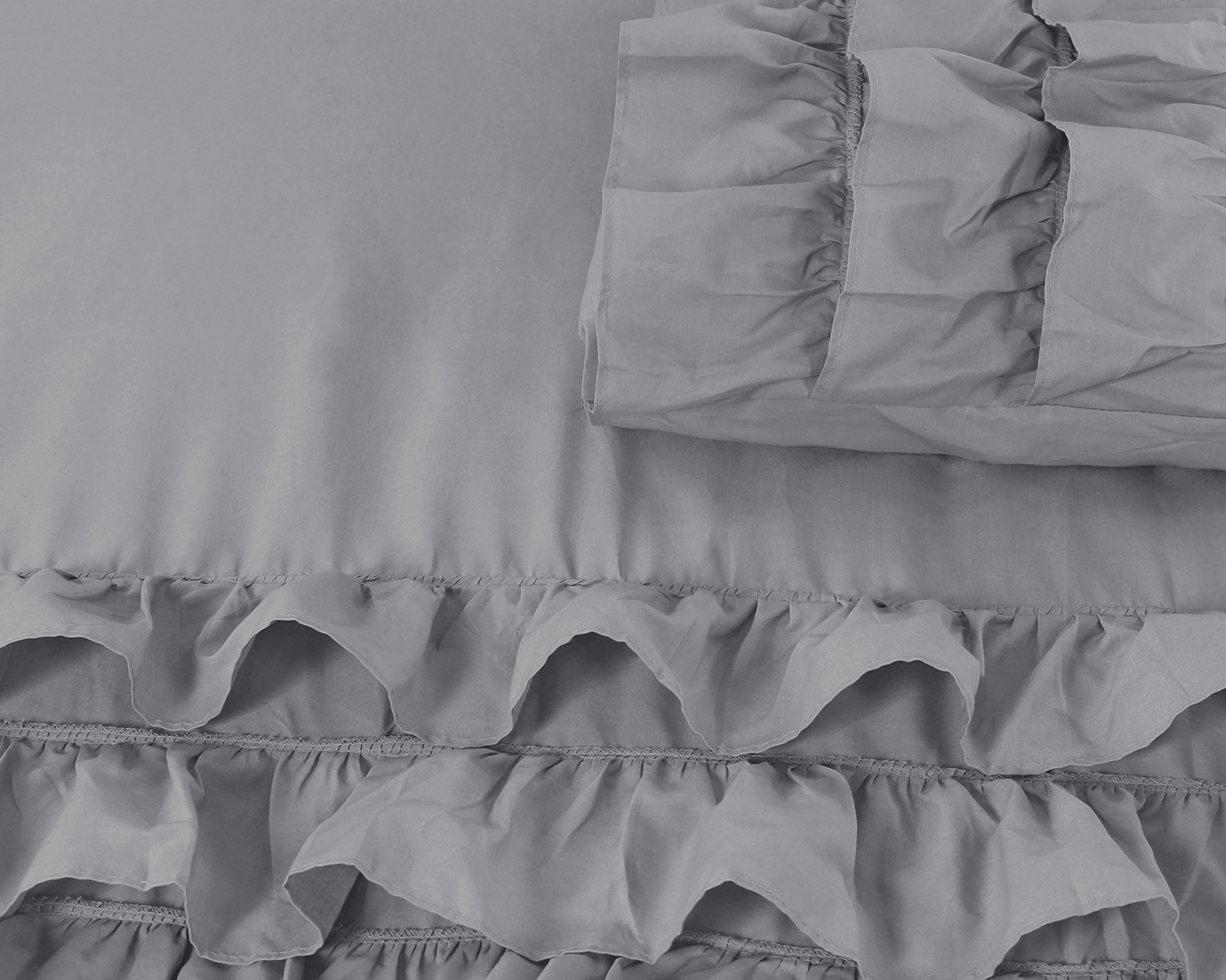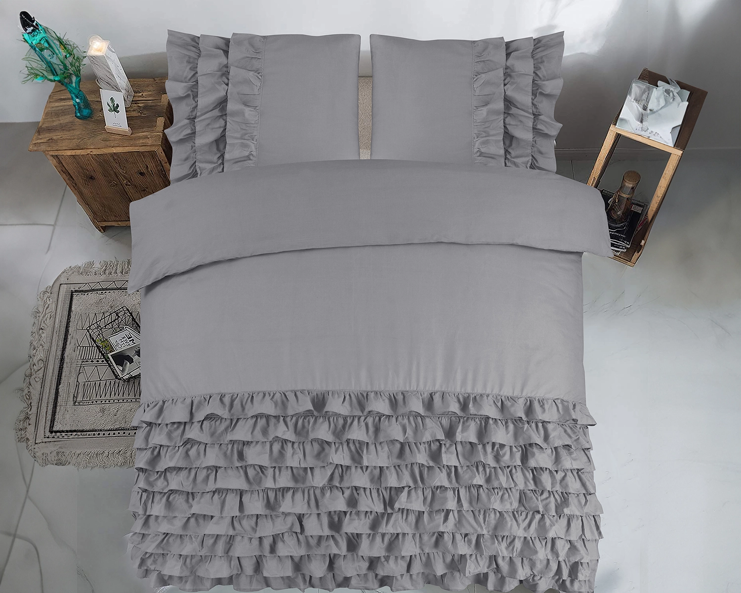 Verfraai zowel je bed als je slaapkamer met het Cyprus grijs dekbedovertrek van Dreamhouse. De effen kleur zorgt voor een rustig gevoel en laat het dekbedovertrek gemakkelijk bij je favoriete decor passen. De onderkant van het dekbedovertrek, en een deel van de kussenslopen, zitten vol ruches die een elegante en speelse sfeer toevoegen. De ruches trekken direct de aandacht en zorgen voor een stijlvol design. Met het grijze Cyprus dekbedovertrek maak je van het bed het middelpunt van je slaapkamer!