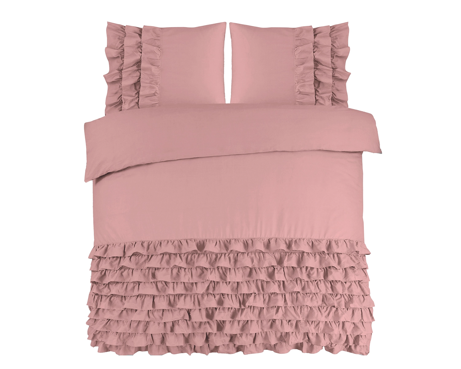 Verfraai zowel je bed als je slaapkamer met het Cyprus roze dekbedovertrek van Dreamhouse. De onderkant van het dekbedovertrek, en een deel van de kussenslopen, zitten vol ruches die een elegante en speelse sfeer toevoegen. Lees meer