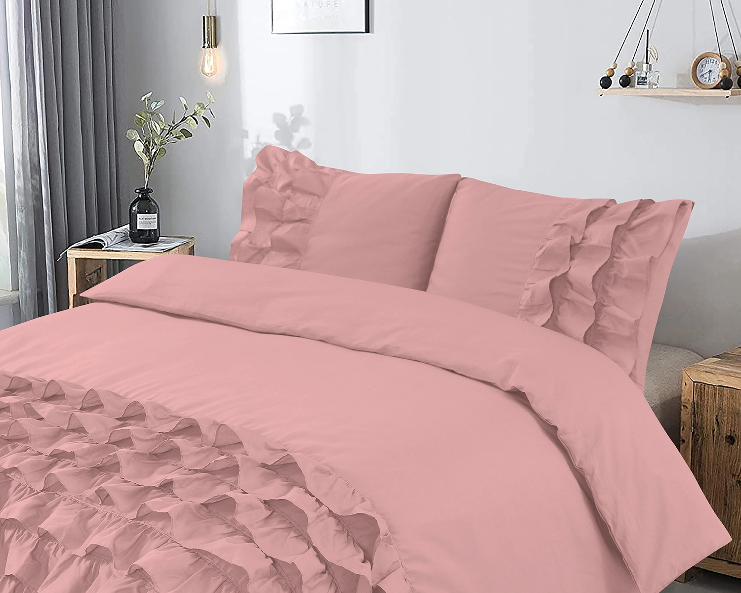 Verfraai zowel je bed als je slaapkamer met het Cyprus roze dekbedovertrek van Dreamhouse. De effen kleur zorgt voor een rustig gevoel en laat het dekbedovertrek gemakkelijk bij je favoriete decor passen. De onderkant van het dekbedovertrek, en een deel van de kussenslopen, zitten vol ruches die een elegante en speelse sfeer toevoegen. De ruches trekken direct de aandacht en zorgen voor een stijlvol design. Met het roze Cyprus dekbedovertrek maak je van het bed het middelpunt van je slaapkamer!