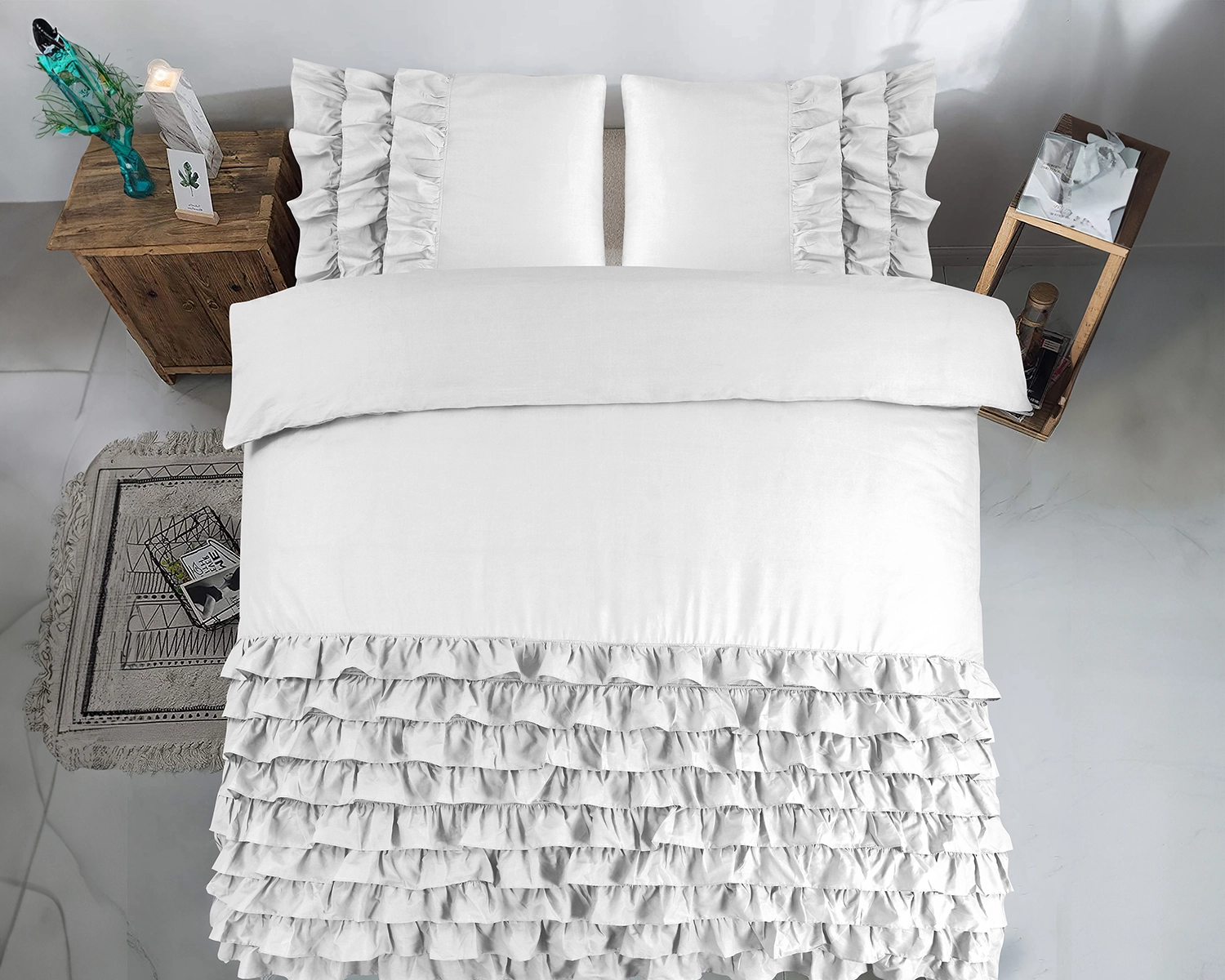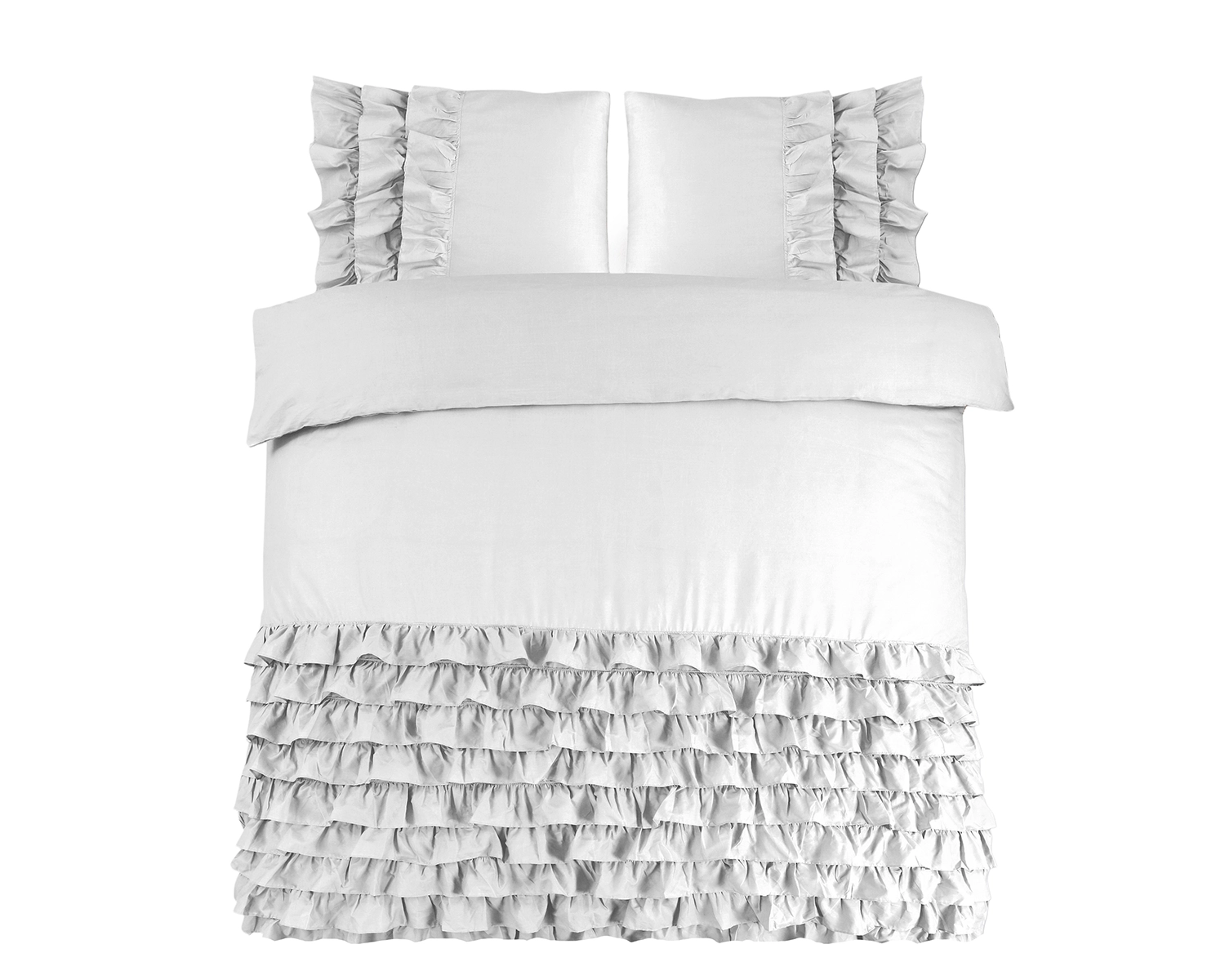 Verfraai zowel je bed als je slaapkamer met het Cyprus wit dekbedovertrek van Dreamhouse. De onderkant van het dekbedovertrek, en een deel van de kussenslopen, zitten vol ruches die een elegante en speelse sfeer toevoegen. Lees meer