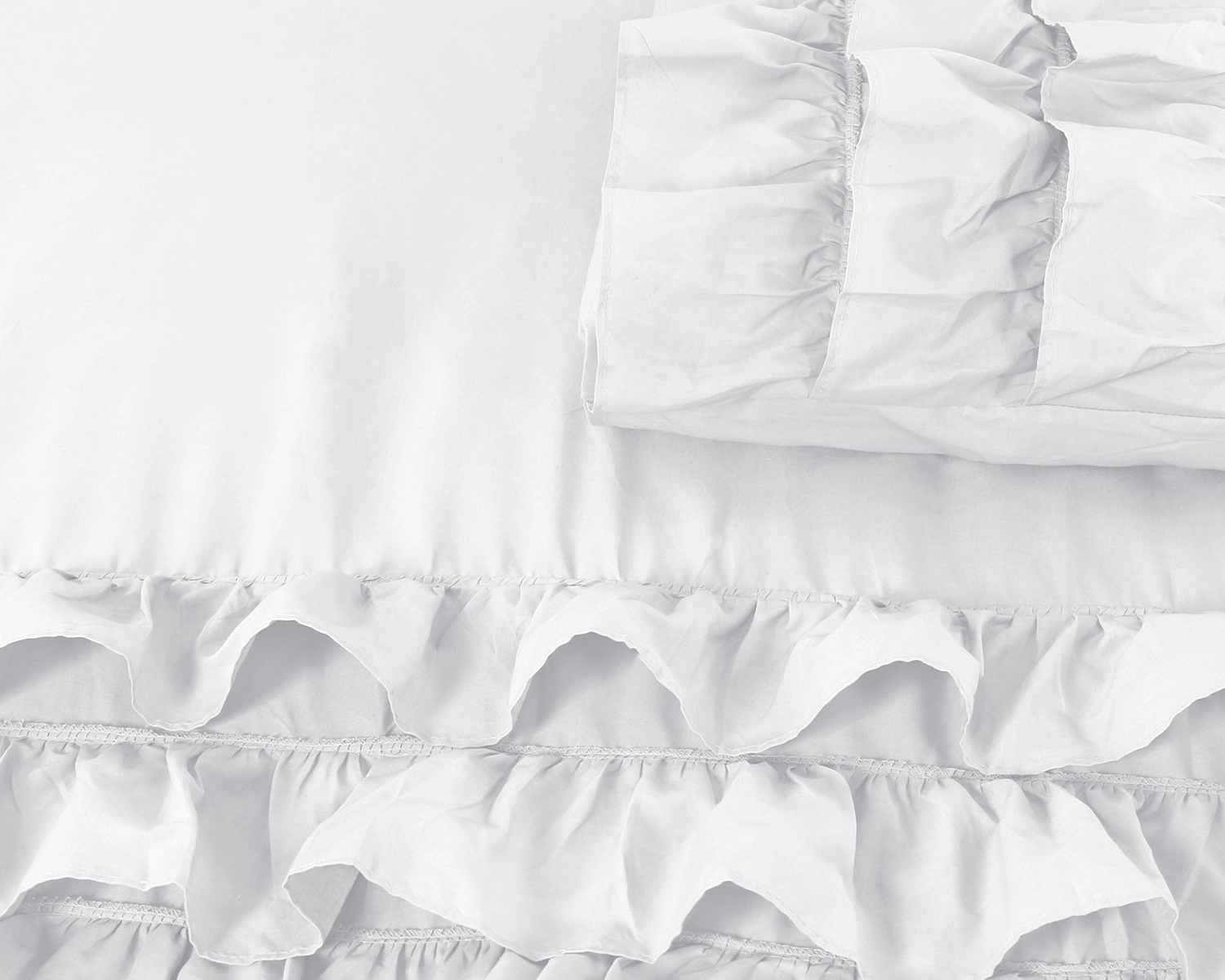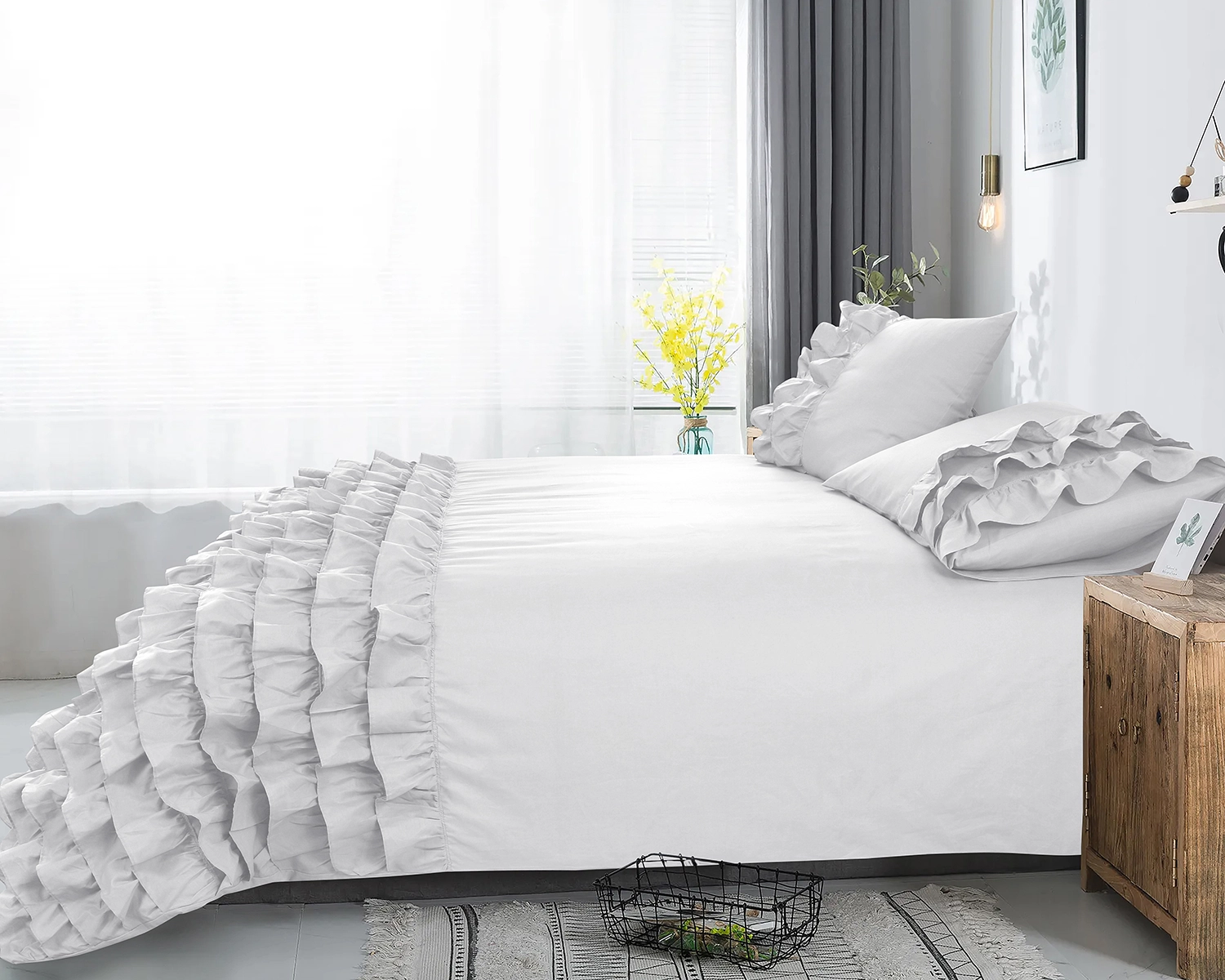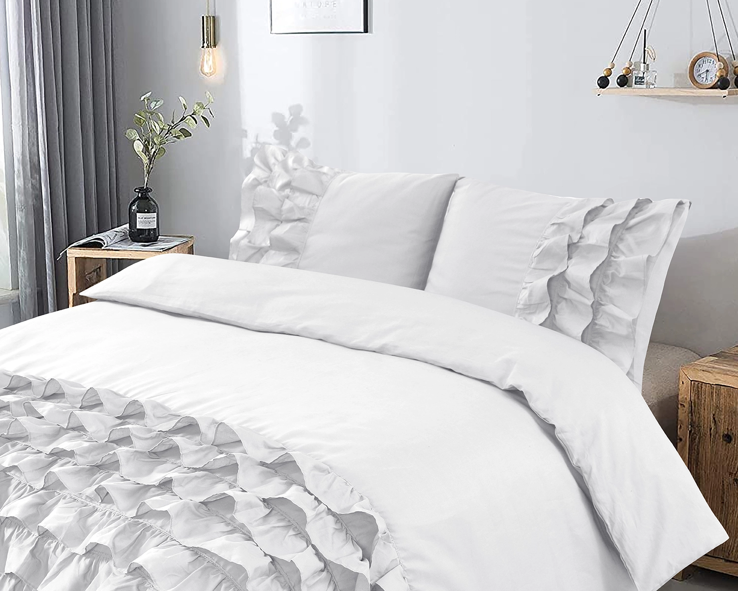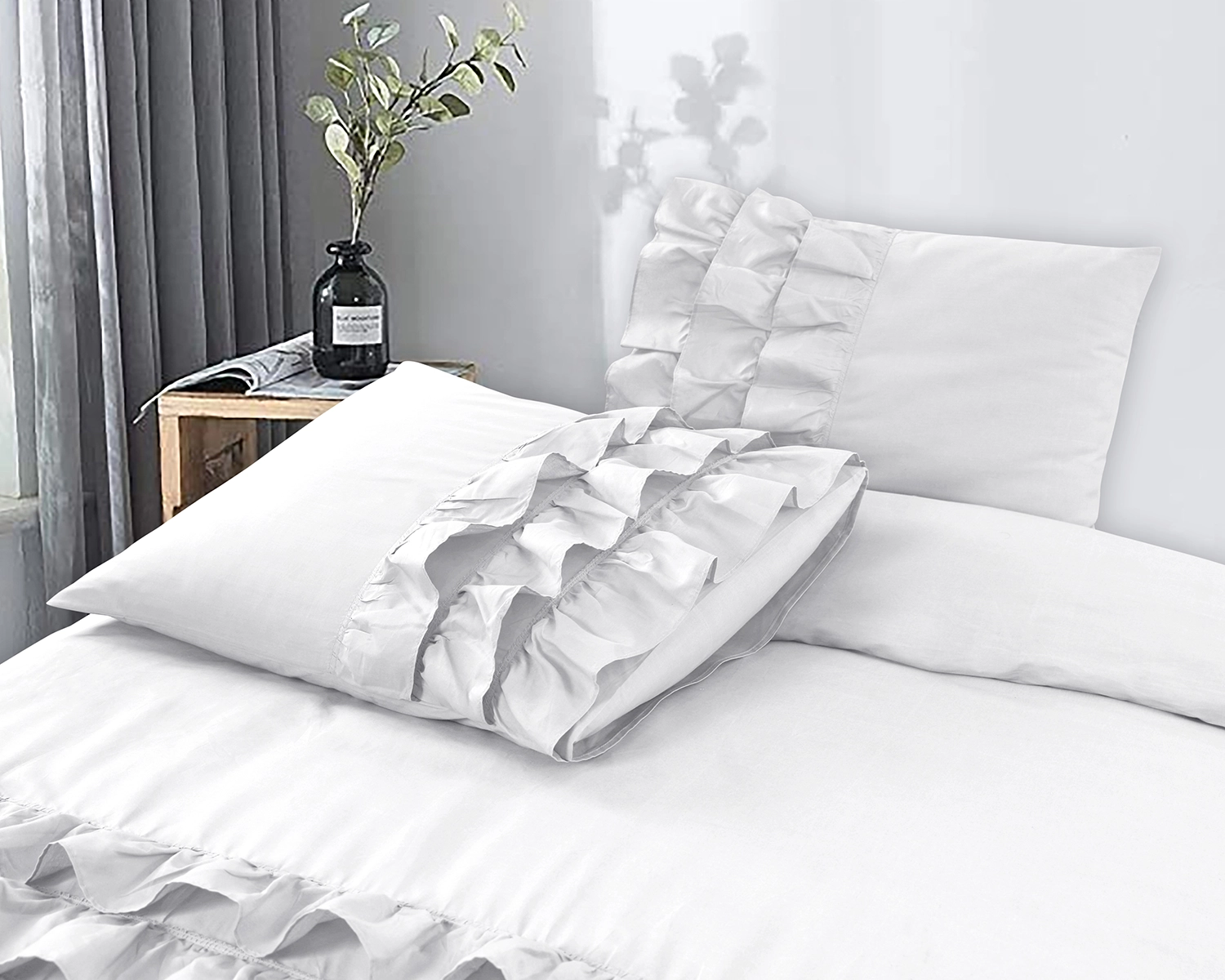 Verfraai zowel je bed als je slaapkamer met het Cyprus wit dekbedovertrek van Dreamhouse. De effen kleur zorgt voor een rustig gevoel en laat het dekbedovertrek gemakkelijk bij je favoriete decor passen. De onderkant van het dekbedovertrek, en een deel van de kussenslopen, zitten vol ruches die een elegante en speelse sfeer toevoegen. De ruches trekken direct de aandacht en zorgen voor een stijlvol design. Met het witte Cyprus dekbedovertrek maak je van het bed het middelpunt van je slaapkamer!