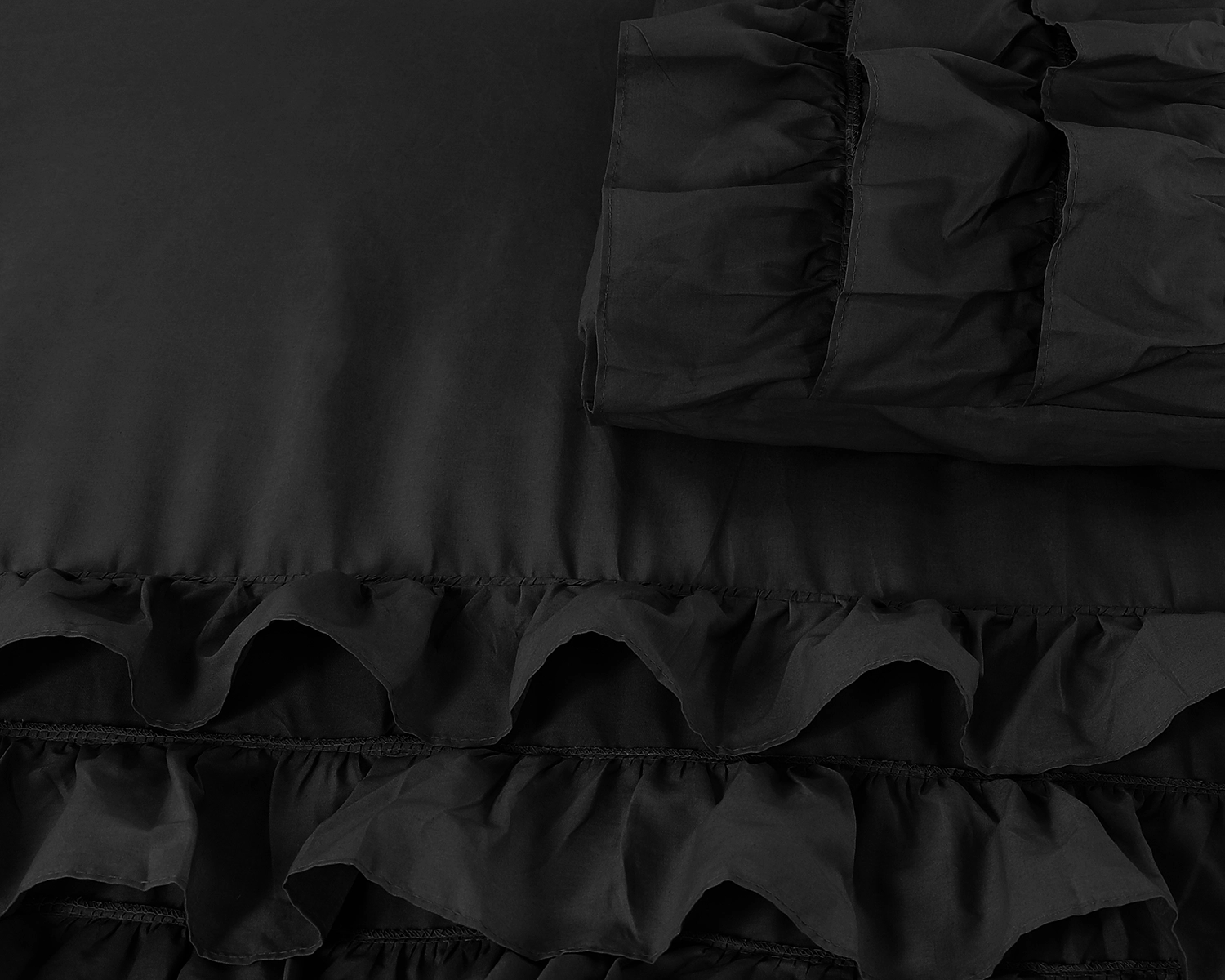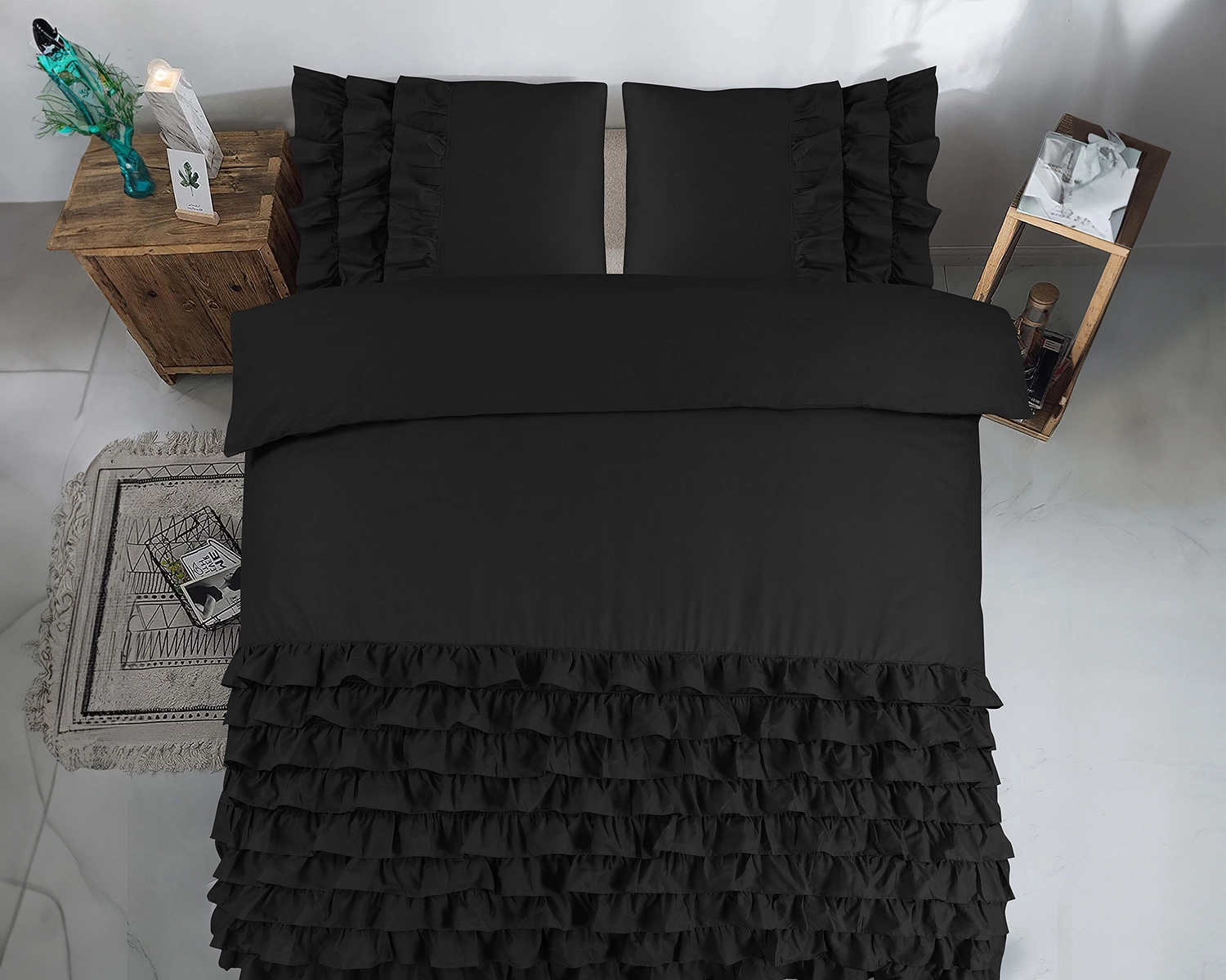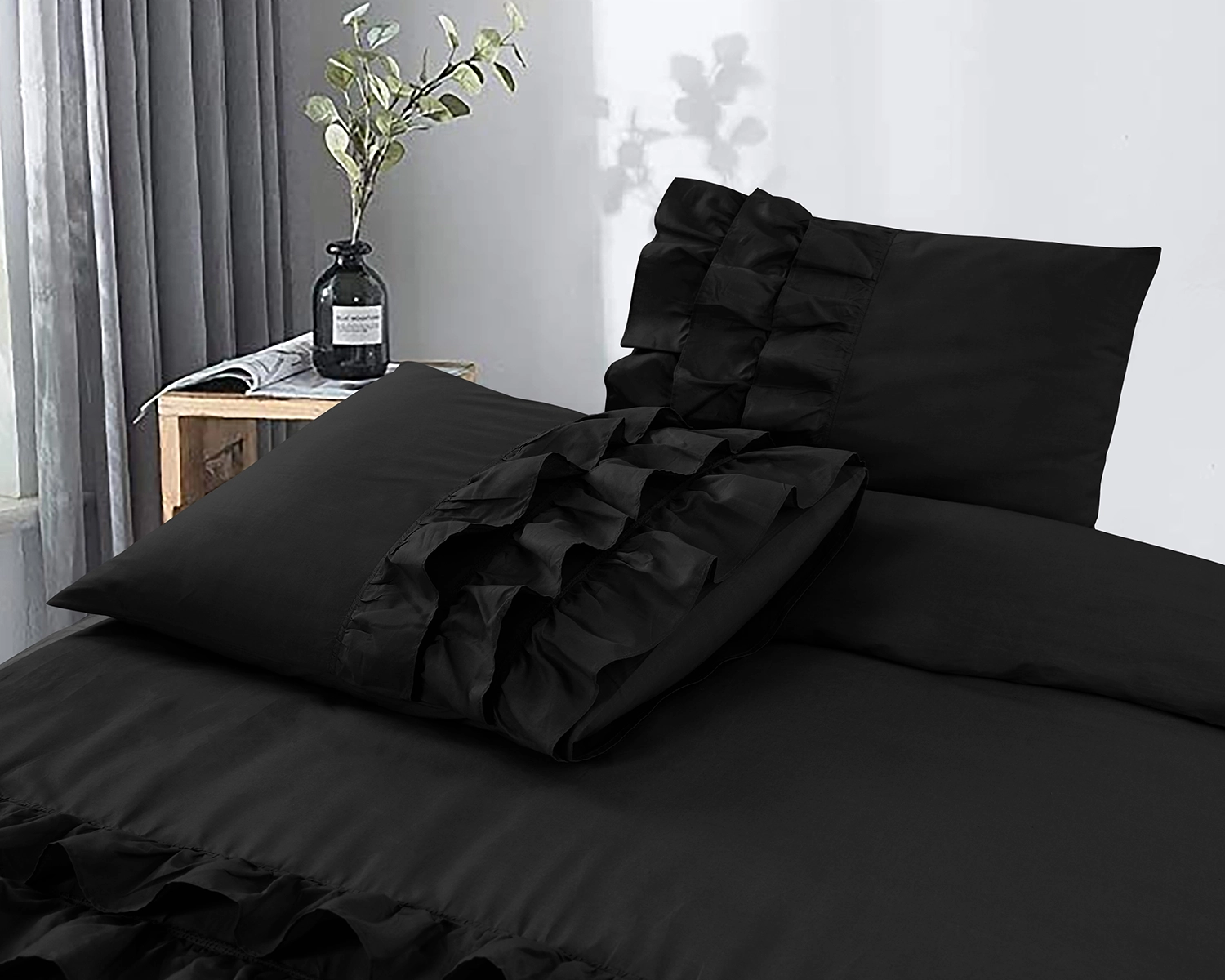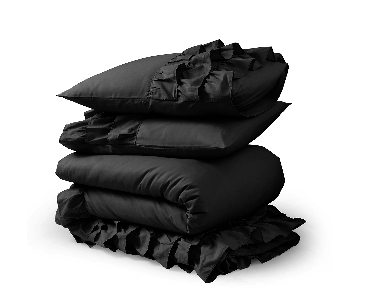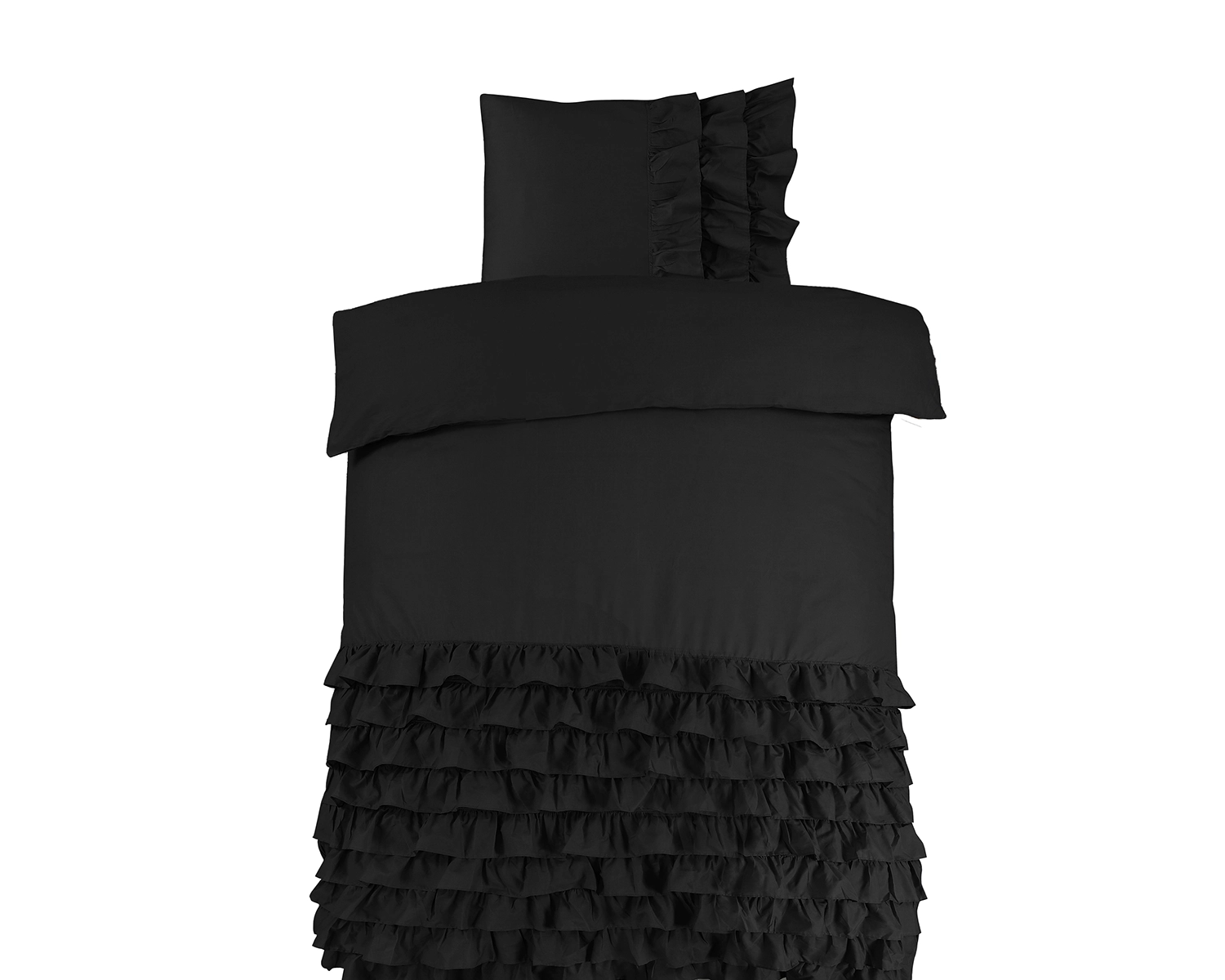 Verfraai zowel je bed als je slaapkamer met het Cyprus zwart dekbedovertrek van Dreamhouse. De onderkant van het dekbedovertrek, en een deel van de kussenslopen, zitten vol ruches die een elegante en speelse sfeer toevoegen. Lees meer
