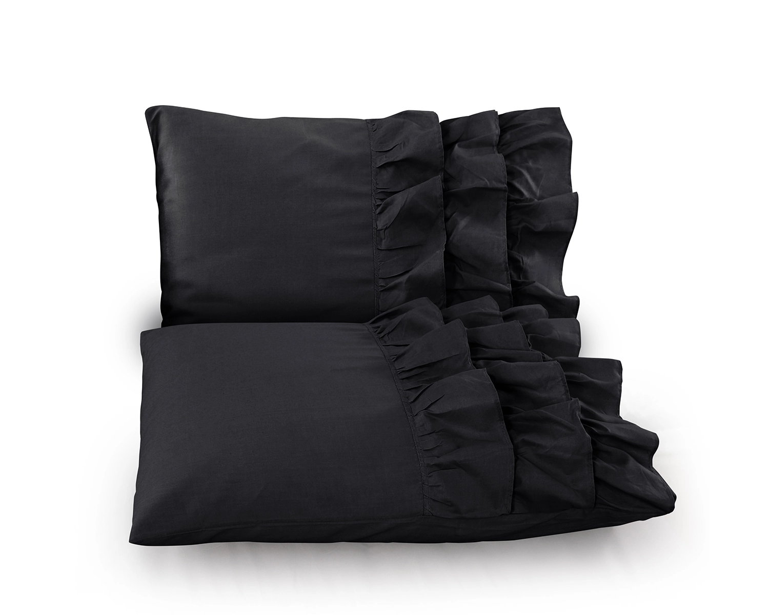 Verfraai zowel je bed als je slaapkamer met het Cyprus zwart dekbedovertrek van Dreamhouse. De effen kleur zorgt voor een rustig gevoel en laat het dekbedovertrek gemakkelijk bij je favoriete decor passen. De onderkant van het dekbedovertrek, en een deel van de kussenslopen, zitten vol ruches die een elegante en speelse sfeer toevoegen. De ruches trekken direct de aandacht en zorgen voor een stijlvol design. Met het zwarte Cyprus dekbedovertrek maak je van het bed het middelpunt van je slaapkamer!