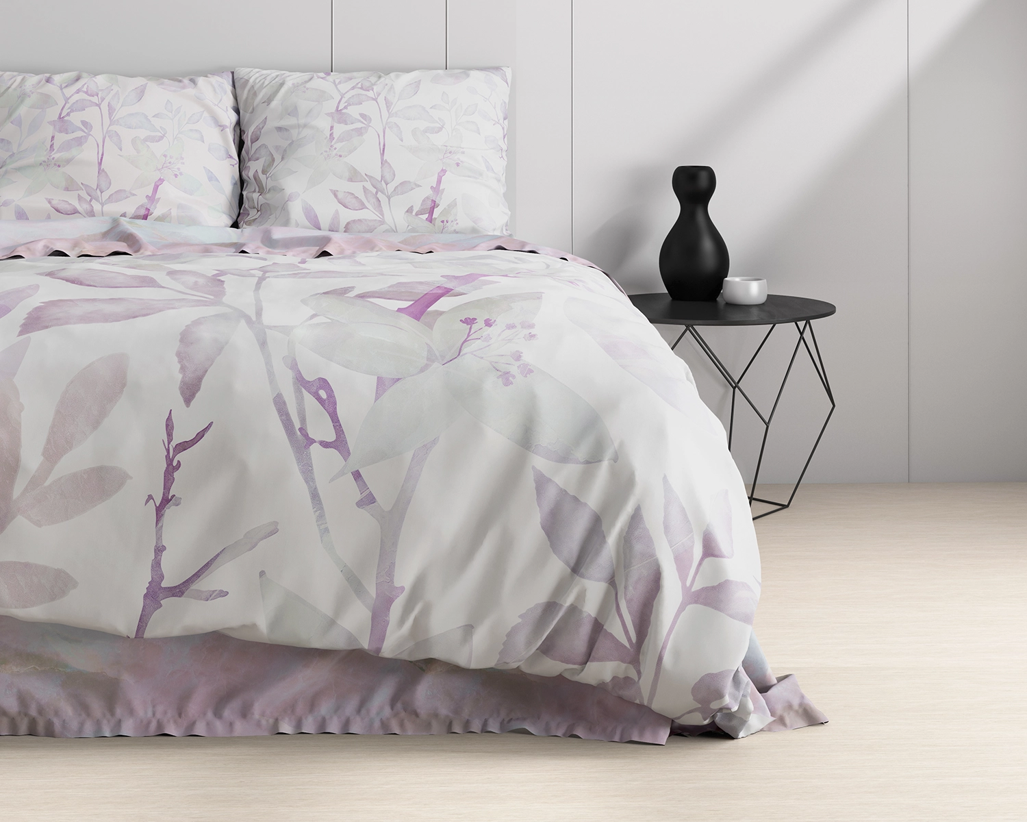 Het dekbedovertrek Maily van Dreamhouse geeft elke ochtend een frisse uitstraling en elke avond een zacht gevoel. Het gebruik van lichte kleuren laat dit dekbedovertrek iets rustgevends uitstralen wat helpt bij het gevoel van ontspanning in de slaapkamer. De verschillende tinten paars, maar ook de tinten grijs helpen allemaal mee bij het creëren van verschillende lagen op het dekbedovertrek. Zo springen bepaalde takken en bloemen, die en diepere paarse kleur hebben meer naar de voorgrond, en vallen andere takken en bloemen met lichtere of grijzere kleuren meer naar de achtergrond.