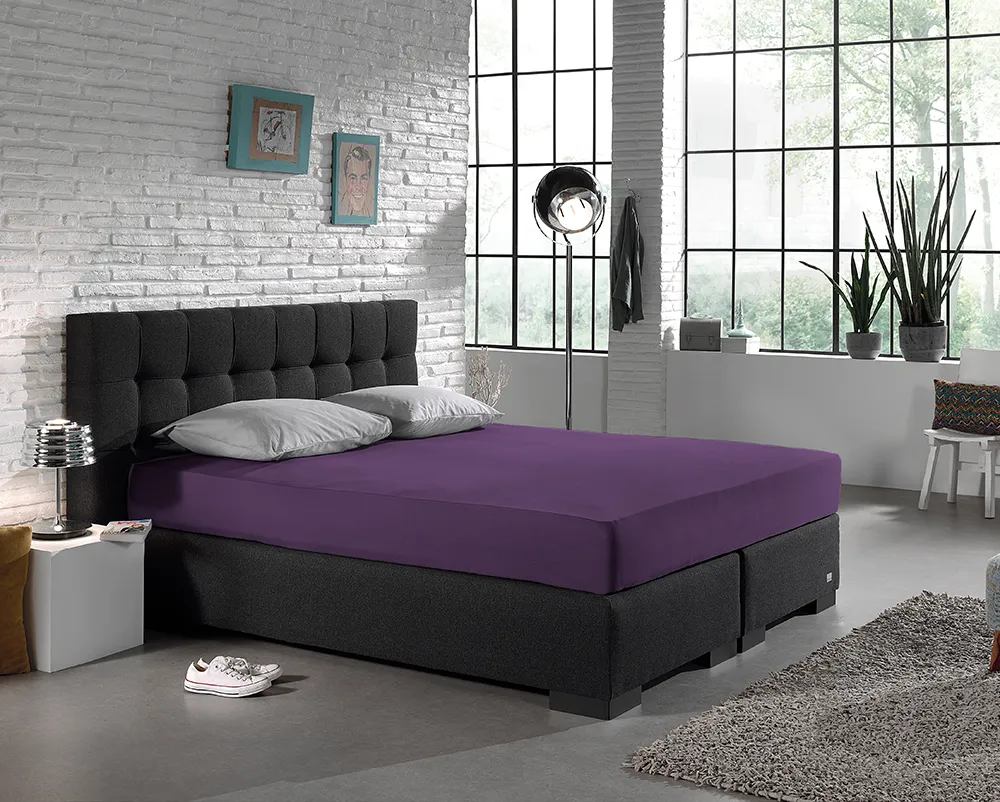 Het paarse jersey hoeslaken van Dreamhouse is gemaakt van heerlijk zacht 100% katoen. De speciale techniek die gebruikt wordt bij de jersey hoeslakens zorgt ervoor dat het katoen een elastische structuur krijgt. Zo kun je het hoeslaken gemakkelijk om je matras trekken, vormt het zich er strak omheen en zal het goed blijven zitten!
