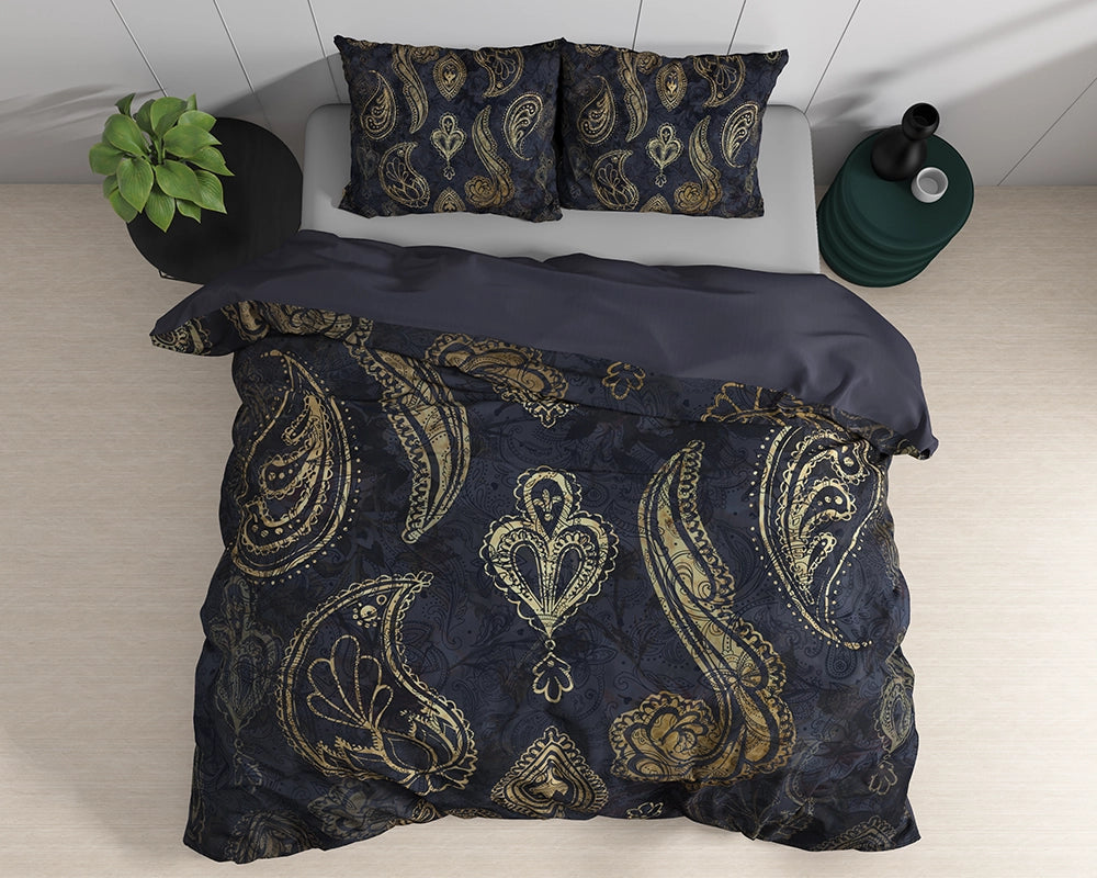 Voel de luxe in de comfort van je eigen slaapkamer met het Jaimy dekbedovertrek van Dreamhouse. De diepe blauwe kleur, de gouden details en de extra blauwe motieven op het dekbedovertrek zorgen er allemaal voor dat je bed een chic tintje krijgt. De onderkant heeft een effen kleur en is niet bedrukt. Met een trendy patroon op je dekbedovertrek zit je altijd goed en de WILD collectie heeft er genoeg om uit te kiezen!