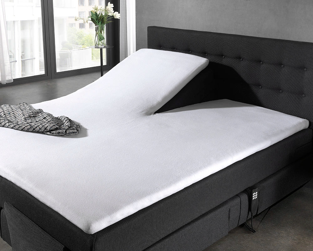 Het molton jersey splittopper hoeslaken van Dreamhouse is gemaakt voor het beschermen van je splittopper. Met een molton voorkom je dat het vocht van bijvoorbeeld zweten in je splittopper trekt. Een molton doe je over het top matras onder je hoeslaken, voor een optimale bescherming. De split heeft een lengte van 100 cm, voor het makkelijk individueel bewegen van matrashelften.