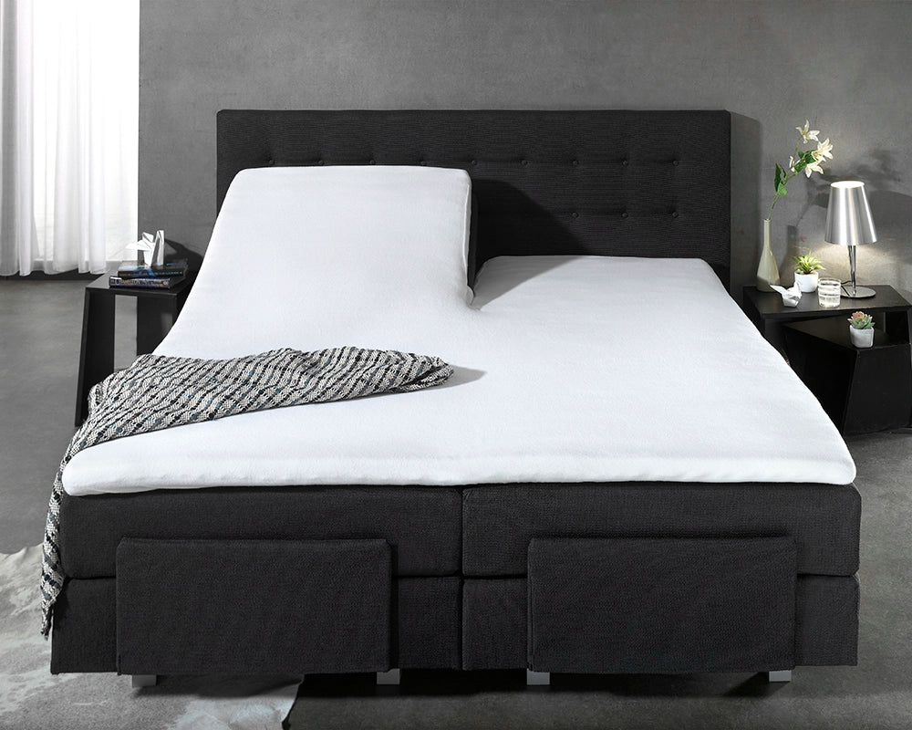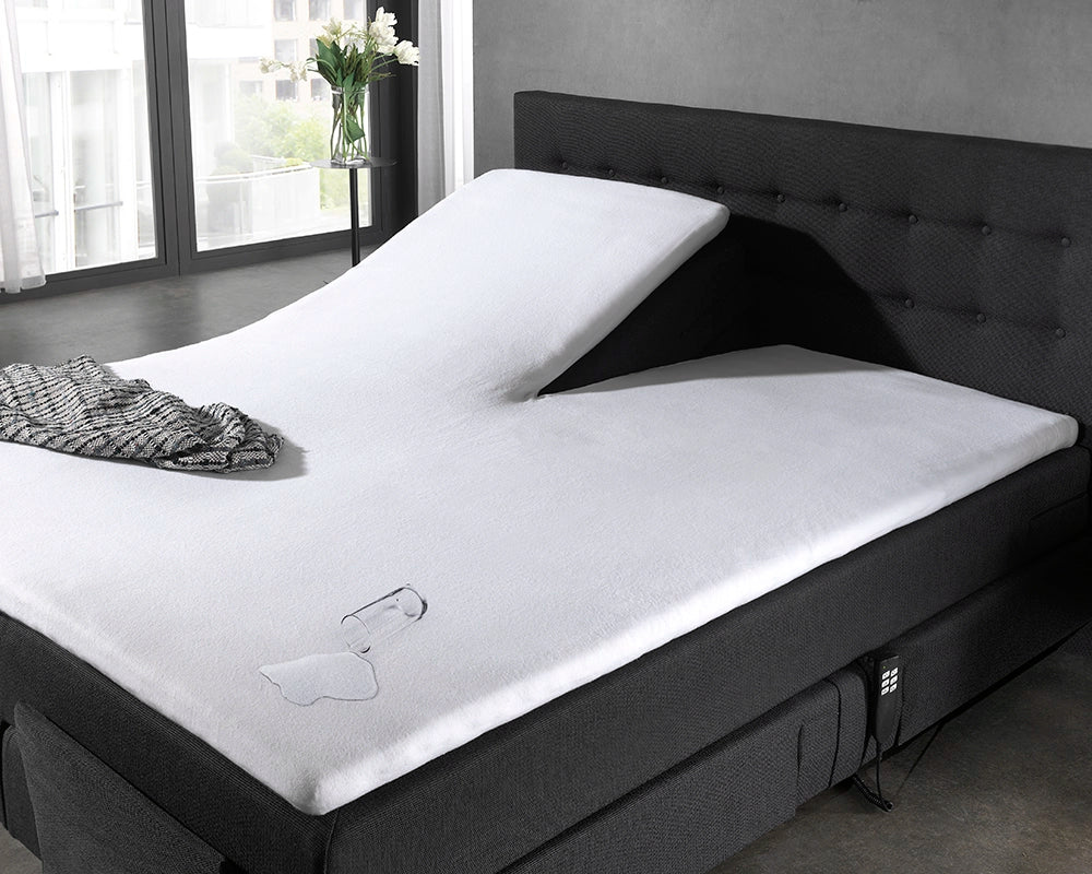 Het molton waterdichte splittopper hoeslaken van Dreamhouse is gemaakt voor het beschermen van je splittopper. De waterdichte molton beschermt niet alleen tegen urine, maar ook tegen zweet en ander vocht. De elastieken rand helpt om het goed om het splittopper matras aan te sluiten. De split van 90 cm zorgt dat je verstelbare bedden nog individueel kunt bewegen.
