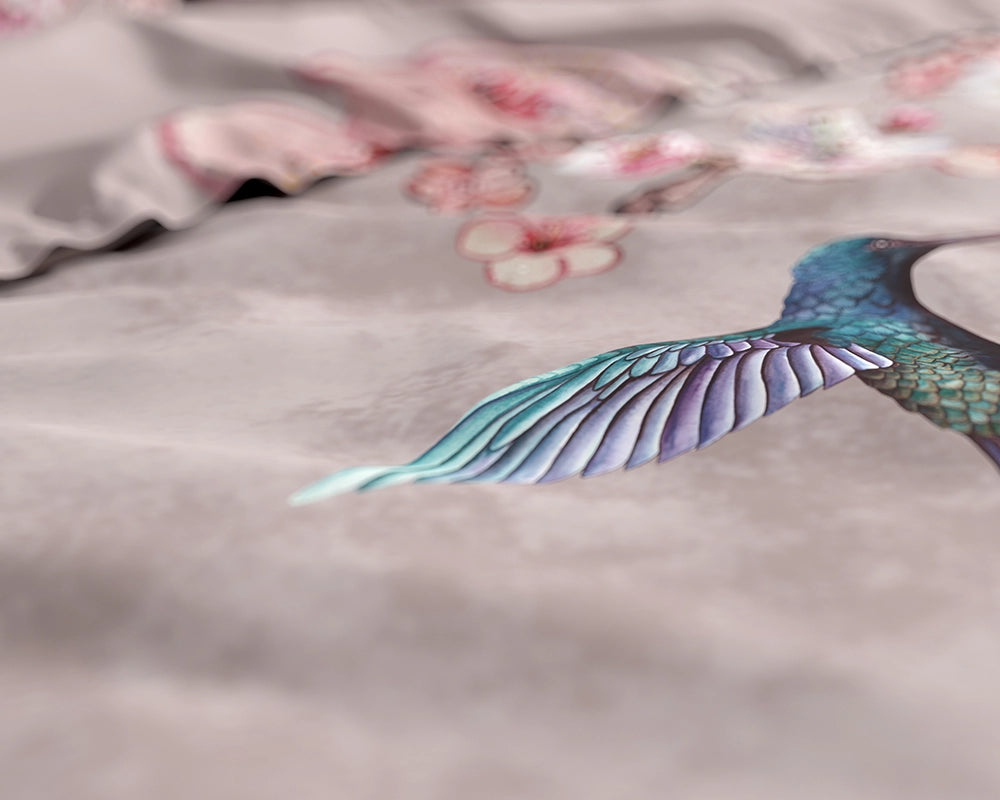 Het dekbedovertrek Blossy uit de Nature collectie van Dreamhouse kan je slaapkamer in een oogwenk transformeren! Met een subtiele kleur als achtergrond blijft het rust uitstralen, terwijl je toch word meegenomen door de prachtige details. Op het dekbedovertrek is een bloeiende bloesemkersenboom te zien. De unieke bloemen en takken zijn afgewisseld tussen reëel en getekend waardoor het geheel een artistieke uitstraling krijgt. Als boost van kleur valt de prachtige kolibrie snel op en geeft het dekbedovertrek Blossy vele lagen aan plezier. De tinten groen en blauw springen uit op de voorgrond en trekken je aandacht, zowel als de vlinder die zich een stukje achter de kolibrie verstopt. Ook de achterkant van het dekbedovertrek is bedrukt.