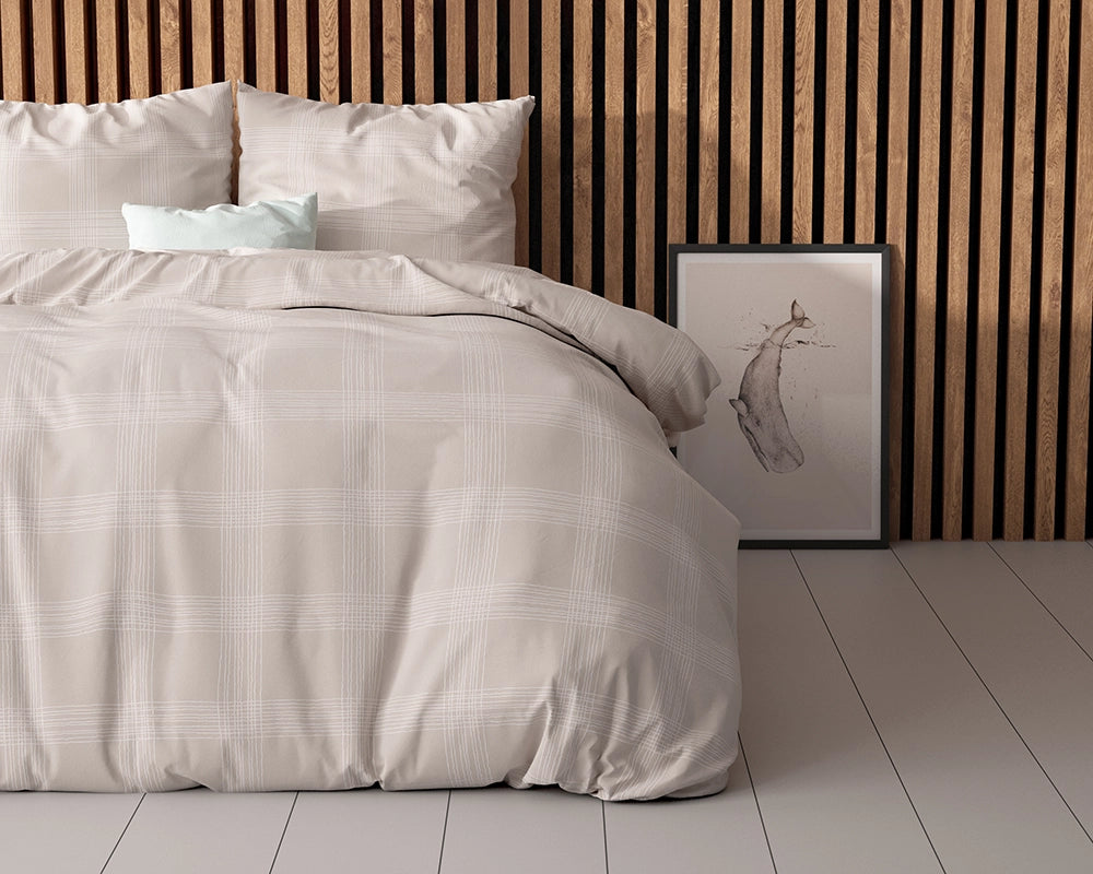 Een tijdloos design en perfect voor degenen die houden van een verzorgde, luxe uitstraling in de slaapkamer. Het dekbedovertek Mirela van Sleeptime laat je elke avond ontspannen in je bed kruipen. Het zachte dekbedovertrek heeft een gemakkelijk design en ook goede kleuren voor een combinatie met je eigen decor. Een zand kleur als basis met een gestreept motief met zowel horizontale als verticale lijnen die elkaar kruisen. Mirela past in elke slaapkamer en geeft een heerlijk gevoel van comfort!