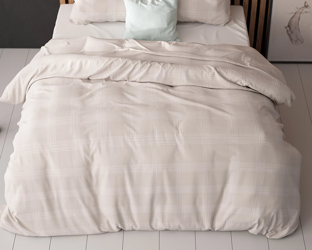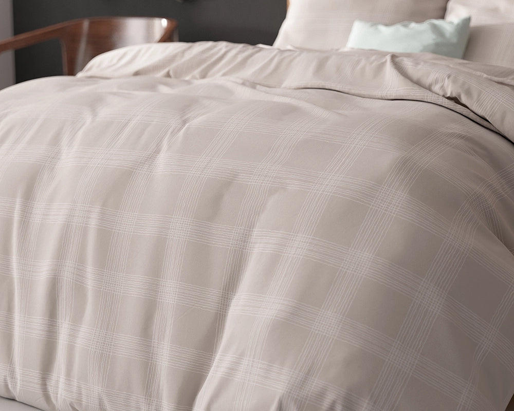 Het dekbedovertrek is gemaakt van gemengd katoen met 150 gram per m2. Dankzij de instopstrook over de gehele breedte is het overtrek eenvoudig op te maken en blijft netjes zitten door de drukknopen.