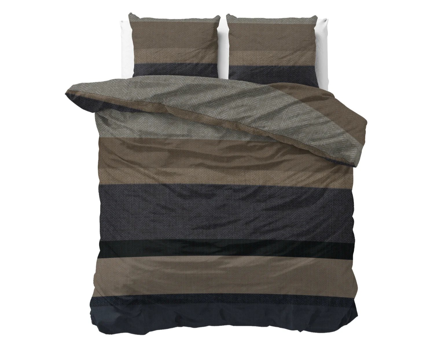Het dekbedovertrek Ravon uit de Flanel collectie van Sleeptime heeft een leuke rustieke uitstraling. Met redelijk donkere tinten van zowel taupe als antraciet geeft het een huiselijk gevoel en straalt het rust uit. Iets wat je natuurlijk in de slaapkamer graag wilt voelen! Het design wisselt de kleuren af in horizontale strepen en laat je gemakkelijk met één dekbedovertrek een volledig nieuwe sfeer toevoegen aan je bed. Ervaar niet alleen het zachte en warme gevoel van de stof, maar ook de ontspanning die het flanel dekbedovertrek Ravon je kan bieden!