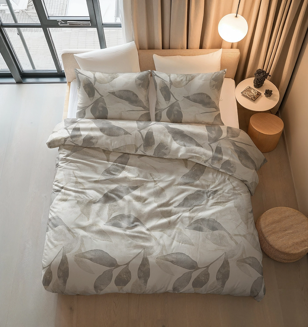 Het dekbedovertrek Foliage van Sleeptime haalt een klein stukje natuur in huis met een design wat verschillende bladeren samenvoegt in een mooi geheel. De tinten van grijs zorgen voor een diepte in het design en geven een rustige uitstraling aan je bed. Lees meer