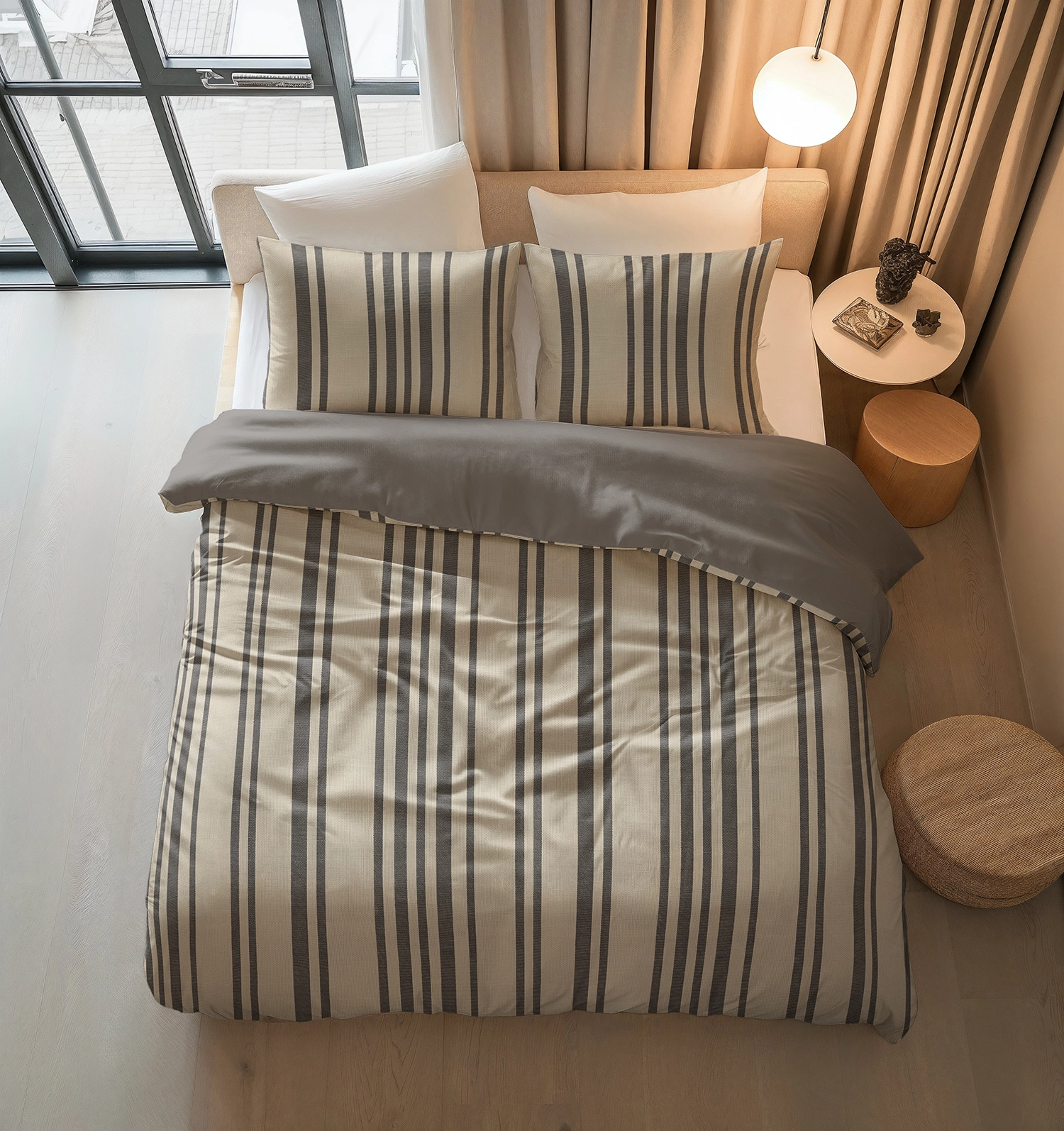 Een eenvoudig design dat toch voor een nieuwe look in je slaapkamer zorgt. Het Linear Linen dekbedovertrek voegt lichte en donkere kleuren mooi samen. Met één blik is dit een rustig dekbedovertrek wat je met een ontspannen gevoel kan gaan laten slapen. Lees meer
