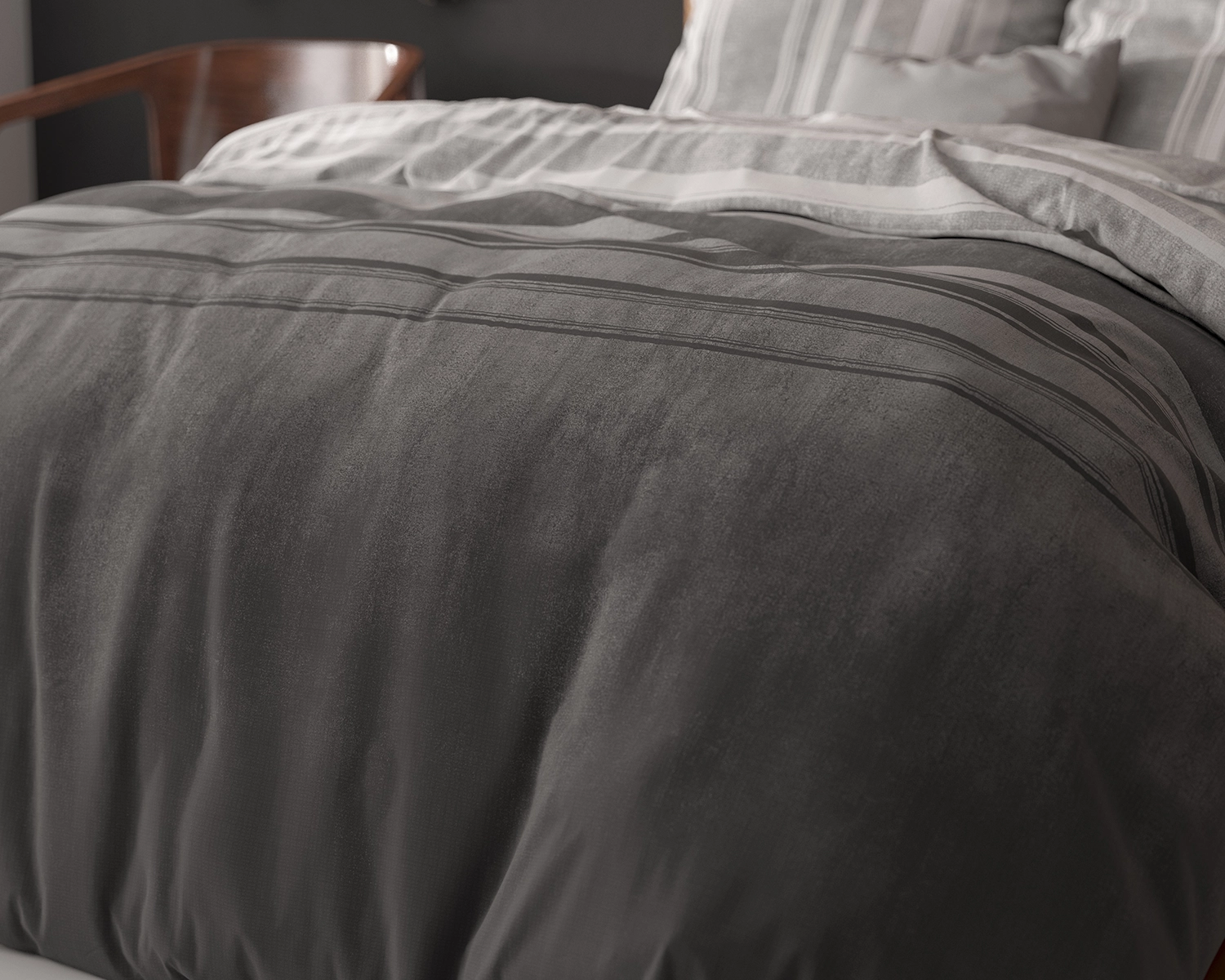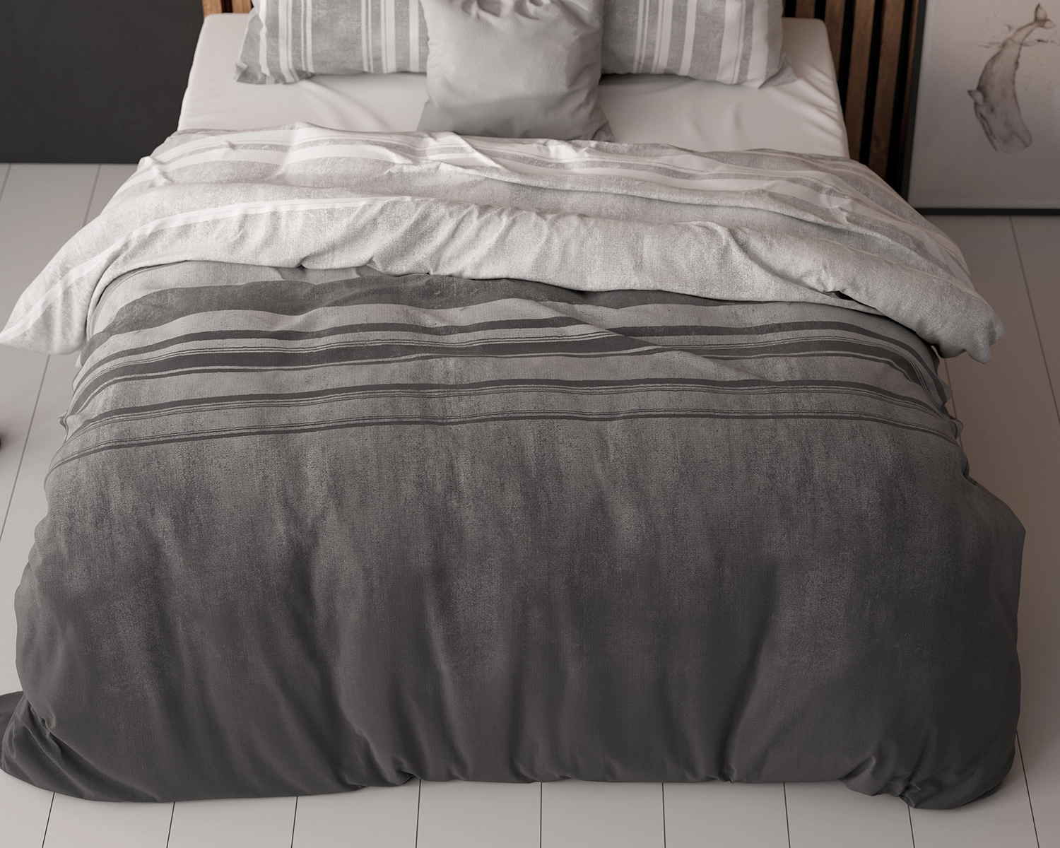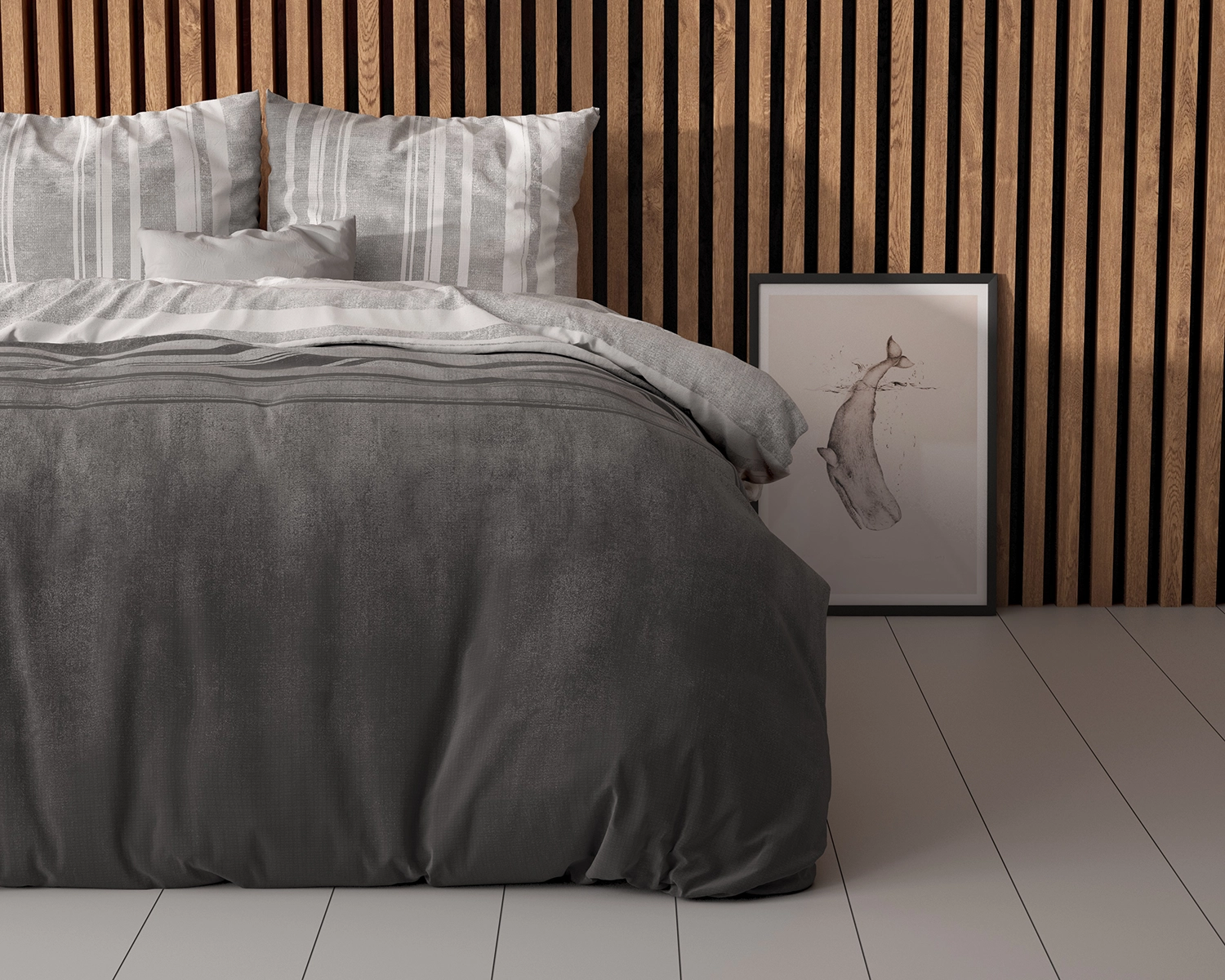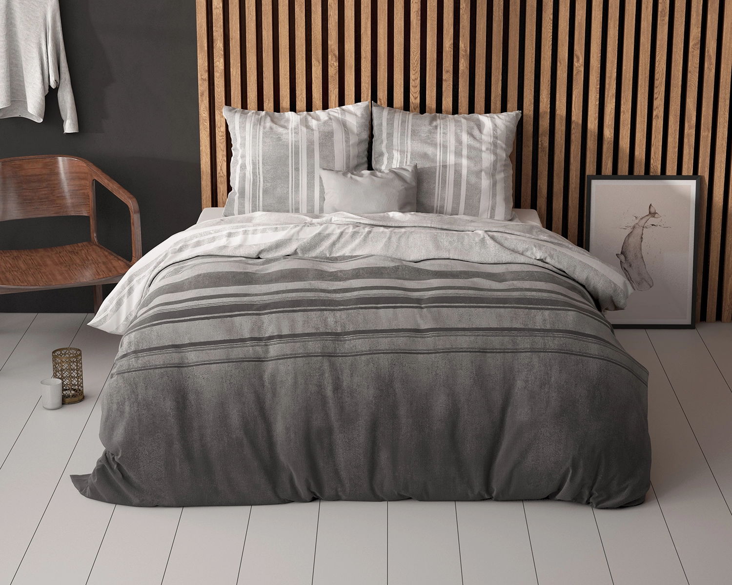 Met het dekbedovertrek Moon Light Grijs van Sleeptime blijft je bed er altijd verzorgd uitzien! Of je nu houdt van een lichte slaapkamer of donker decor, het dekbedovertrek geeft je alle opties om te mixen en matchen. Door het ombre effect van licht naar donker heb je het goede van beide werelden. In de ochtend zal het een frisse blik brengen en je helpen je goed te voelen met het beginnen van de dag. En in de avond kan de donker grijze kleur een gevoel van ontspanning bezorgen die je helpt om lekker te gaan slapen. Met horizontale lijnen op het dekbedovertrek zelf, en verticale lijnen op de kussenslopen, heb je een design wat opvalt en toch niet wegneemt van je eigen slaapkamer.