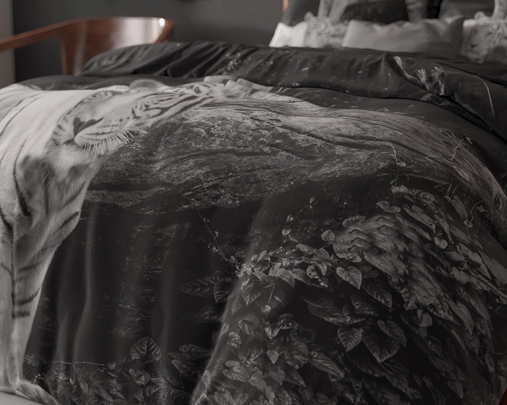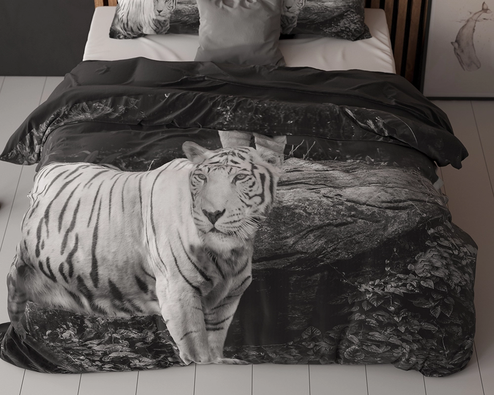 Verander de hele look van je slaapkamer met het dekbedovertrek Tigers van Sleeptime. De twee afgebeeld tijgers trekken direct de aandacht bij het openen van je deur. Het dekbedovertrek heeft een kleuren palette in het zwart wit. Lees meer