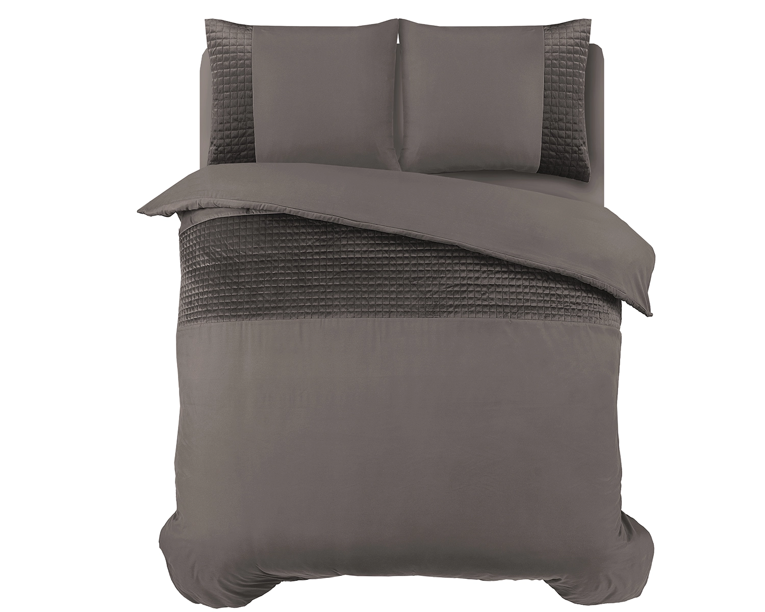 Het dekbedovertrek is aan de bovenzijde gemaakt van 100% microvezel, met een brede velvet band en aan de onderzijde van 100% microvezel. Dankzij de instopstrook over de gehele breedte is het overtrek eenvoudig op te maken en blijft netjes zitten door de drukknopen.